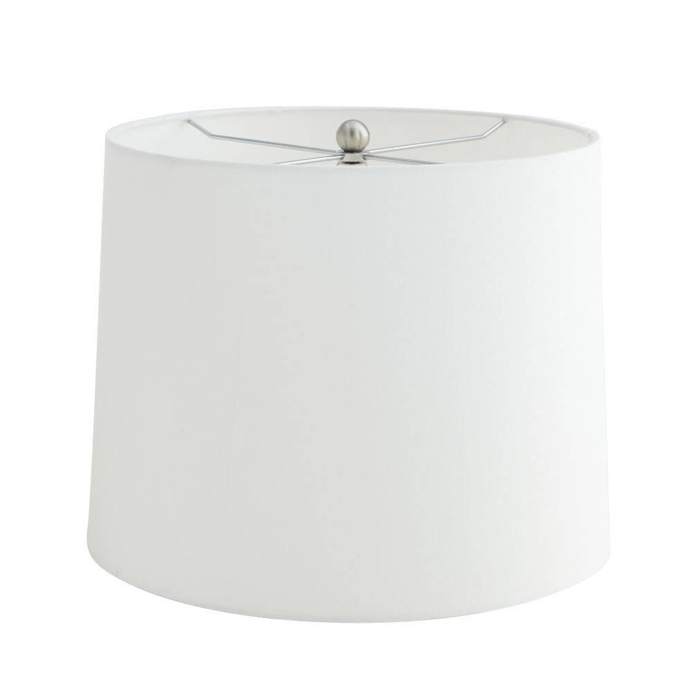 A thundercloud finish lends an aquatic appeal to the classic porcelain table lamp. This easy-to-place form emphasizes its pleasing texture. Finished with an off-white linen drum shade lined in white cotton and polished nickel steel hardware. Finish will vary.