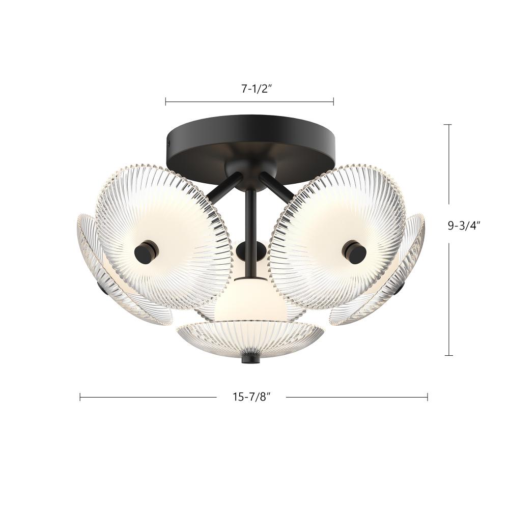Hera 16-in Matte Black/Clear Ribbed Glass LED Flush Mount