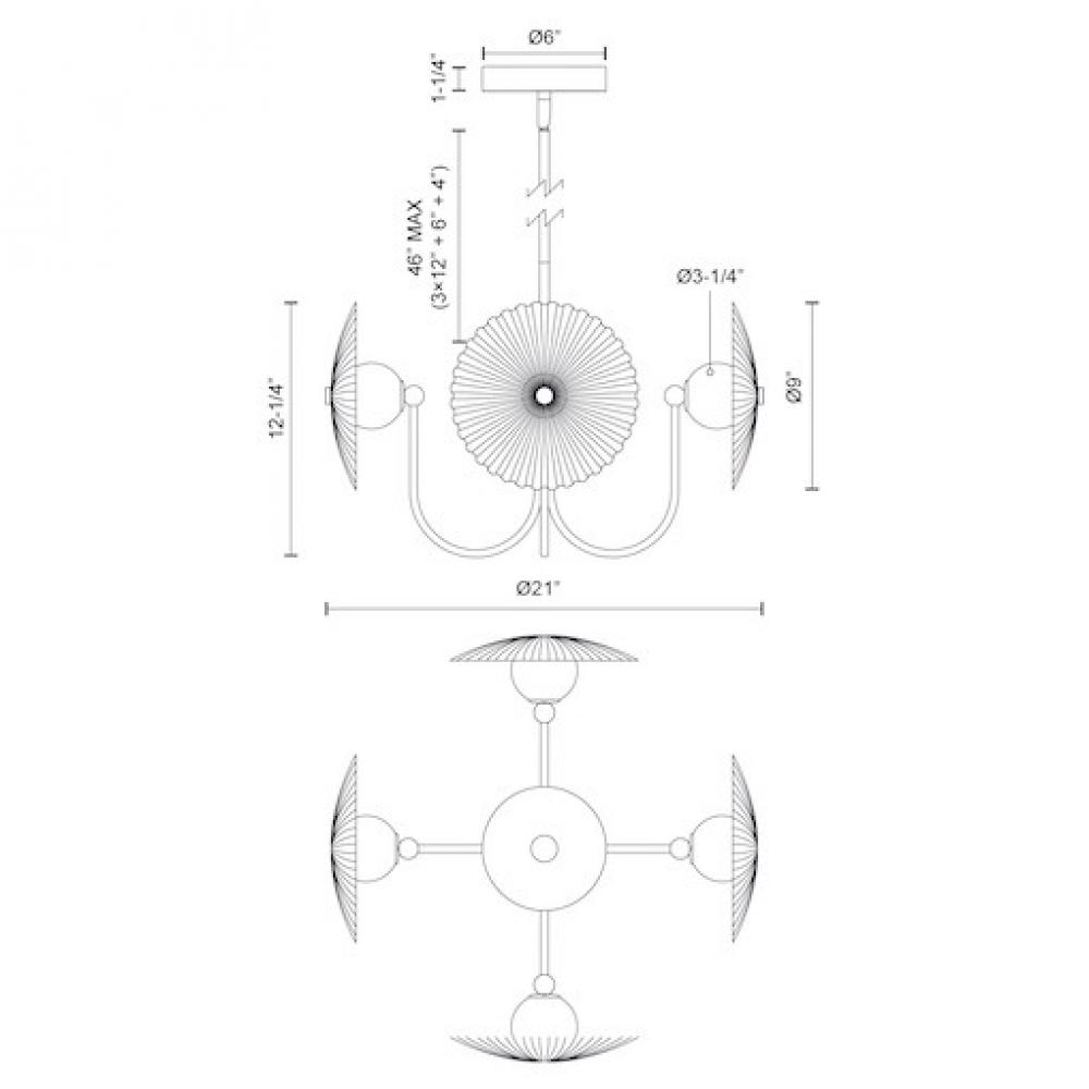 46" Max (3 x 12" + 1 x 6" + 1 x 4")