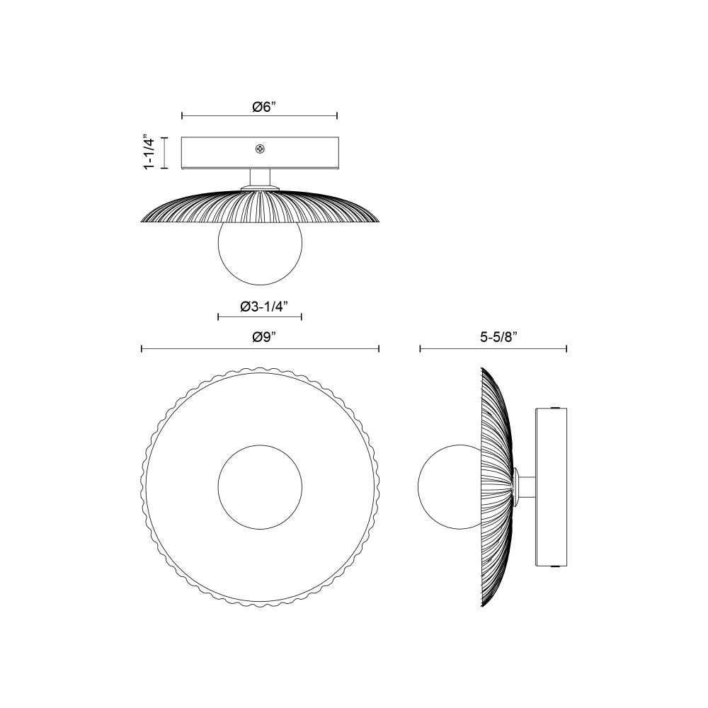 Canopy: 6 L x 6 W x 1.25 E x 6 Dia
