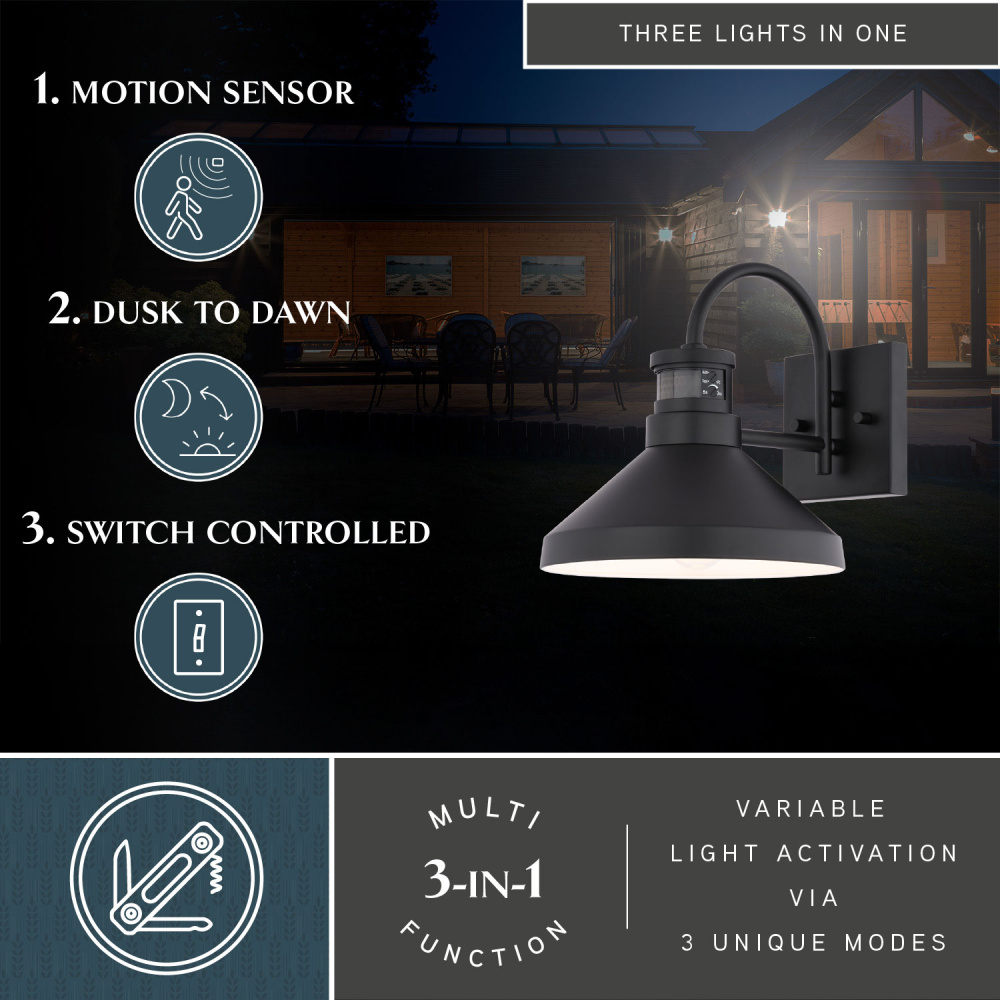 Highland Park 9-in. W Outdoor Motion Sensor Wall Light Matte Black and White