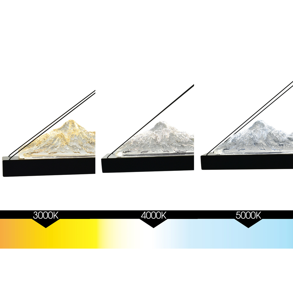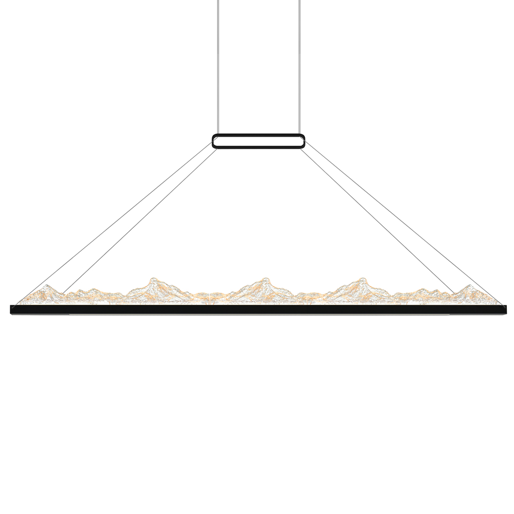 Channel the tranquility and beauty of nature with the Himalayas 62'' Integrated LED Chandelier in Black. This wide-format island light is inspired by the majestic Himalayan peaks and flowing mountain streams. Its linear black frame and cascading LED glow deliver a refined, organic presence that enhances contemporary interiors with a peaceful, ambient shine. Featuring selectable color temperatures (3000K, 4000K, 5000K), this chandelier adapts easily to your lighting needswhether you're hosting, working, or relaxing. A luxurious statement piece for kitchens, dining rooms, or game areas. Finish: Black Light Count: Integrated LED Color Temperature: Selectable (3000K / 4000K / 5000K) Light Source: LED, No Bulb Required Adjustable Hanging Height: Yes Material: Metal Style: Modern / Nature-Inspired