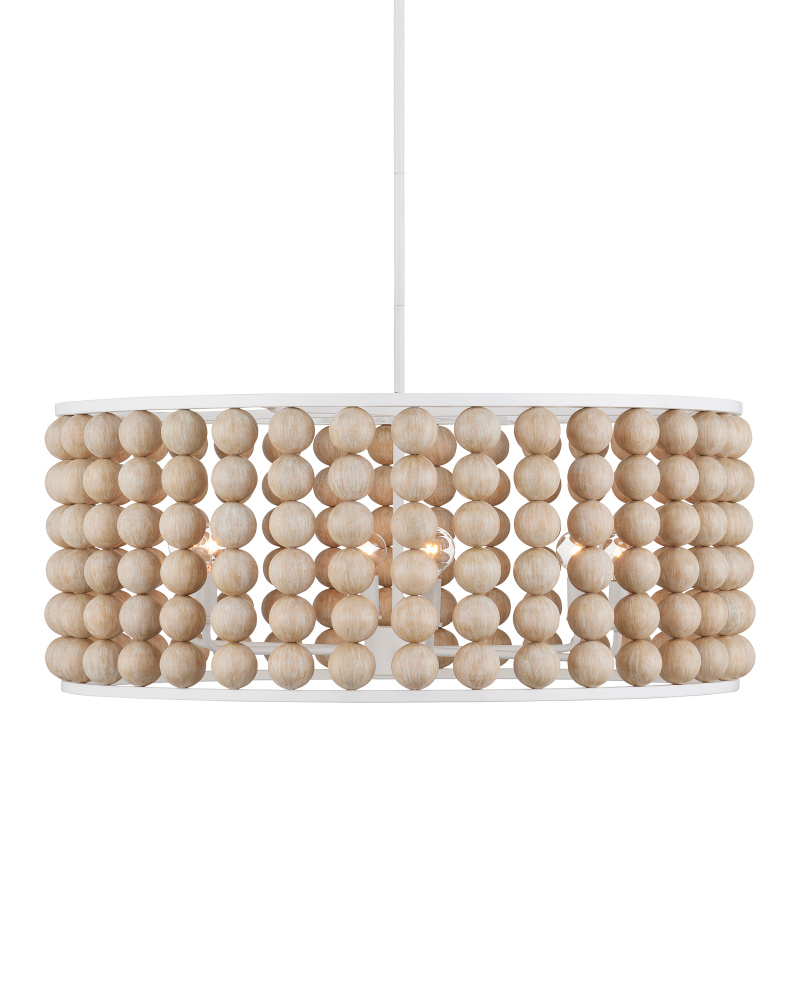 The wooden beads are the centerpiece of the Holcroft Chandelier, with the design built around them to create a striking fixture. The Sandstone-finished beads are fastened to a wrought iron frame, which hangs from a rod, both in a Sugar White finish that gives the chandelier a surprisingly light appearance. The large size of the beads adds an unexpected element to the design, which leans toward a bohemian style. Adjustable from 20.25" to 62.25" with use of included chain/rod kit/cable. If your space calls for a longer drop, additional chain/rods/cable is available for purchase.