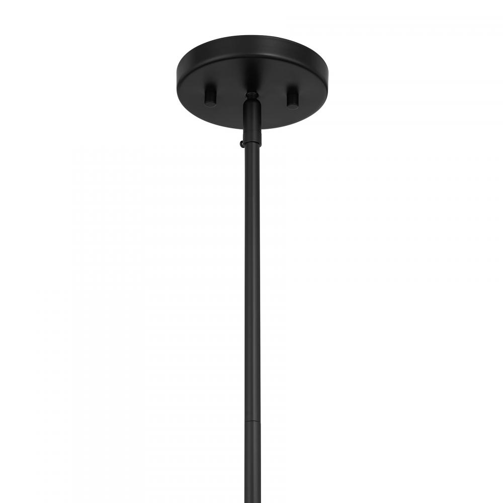 The Savoy House Holton 1-light mini pendant showcases an inventive and geometric style with a tall, rounded shade of clear ribbed glass and a slim, rounded structure finished in Matte Black. It will bring a big dose of style to any space! Holton is 6.5" in width and has an adjustable height ranging from 15.25" to 44.75". It uses one standard size bulb of up to 60 watts. Bulb not included. Comes with three 9.5" downrods.