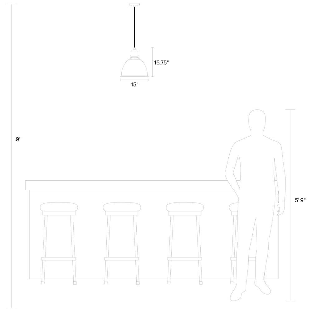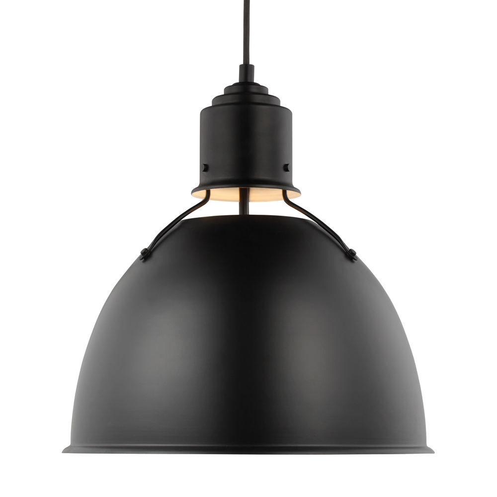 The Huey one-light pendant is offered in the Brushed Nickel, Antique White, Midnight Black, or Satin Bronze finish. The contoured shape resembling an old-fashioned barn light, offers drama and formality while evoking a retro feel. It's cool surface design brings a modern element to any cozy space looking to redefine its image.