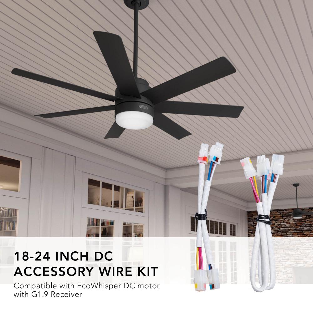 If you have high ceilings and need downrods over 18 inches or more for the perfect fan height, then we have you covered. Our current fans are wired for a standard ceiling height so they only go up to 12 inch downrods. This 24 inches of extra wire will help you extend your fan to the height you need for those higher ceilings. Easy to use with connectors included, this kit is for you. Shop for the right fan and don't forget the extra downrods you will need to reach great ceiling heights.