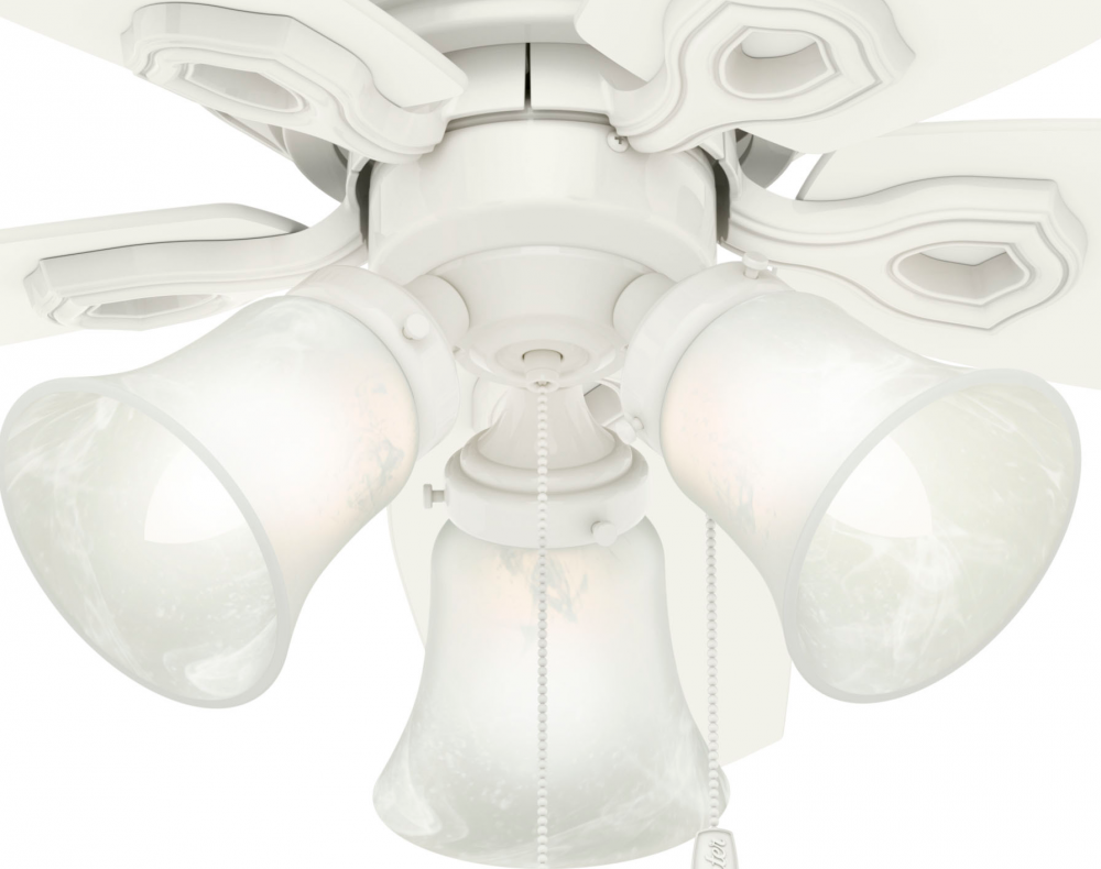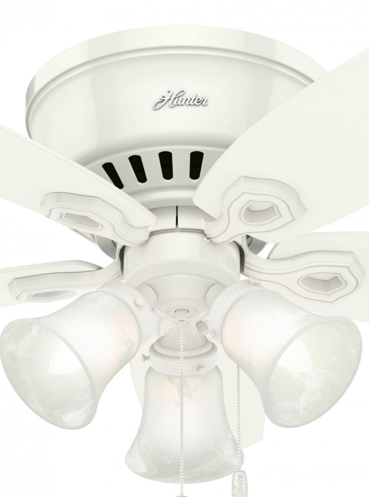 With a 42-inch blade span and low-profile design, the casual, traditional style of the Builder Low Profile will complement small rooms in your home without overpowering them. A mainstay in the Hunter? product line, this low-profile ceiling fan with lights features three-speed WhisperWind? motor technology to deliver quiet and ultra-powerful performance.