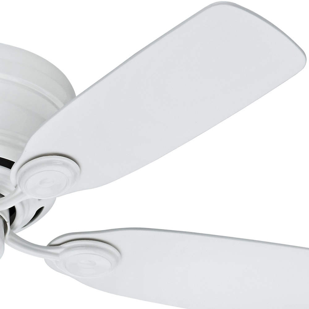The Hunter Low Profile? IV traditional ceiling fan is designed with housing specially crafted to fit flush to the ceiling making it ideal for use in your small rooms with low ceilings. Available in multiple finishes, this low-profile ceiling fan without light is powered by a three-speed WhisperWind? motor to deliver ultra-powerful and whisper-quiet performance making it the perfect complement for your casual living rooms and bedrooms.