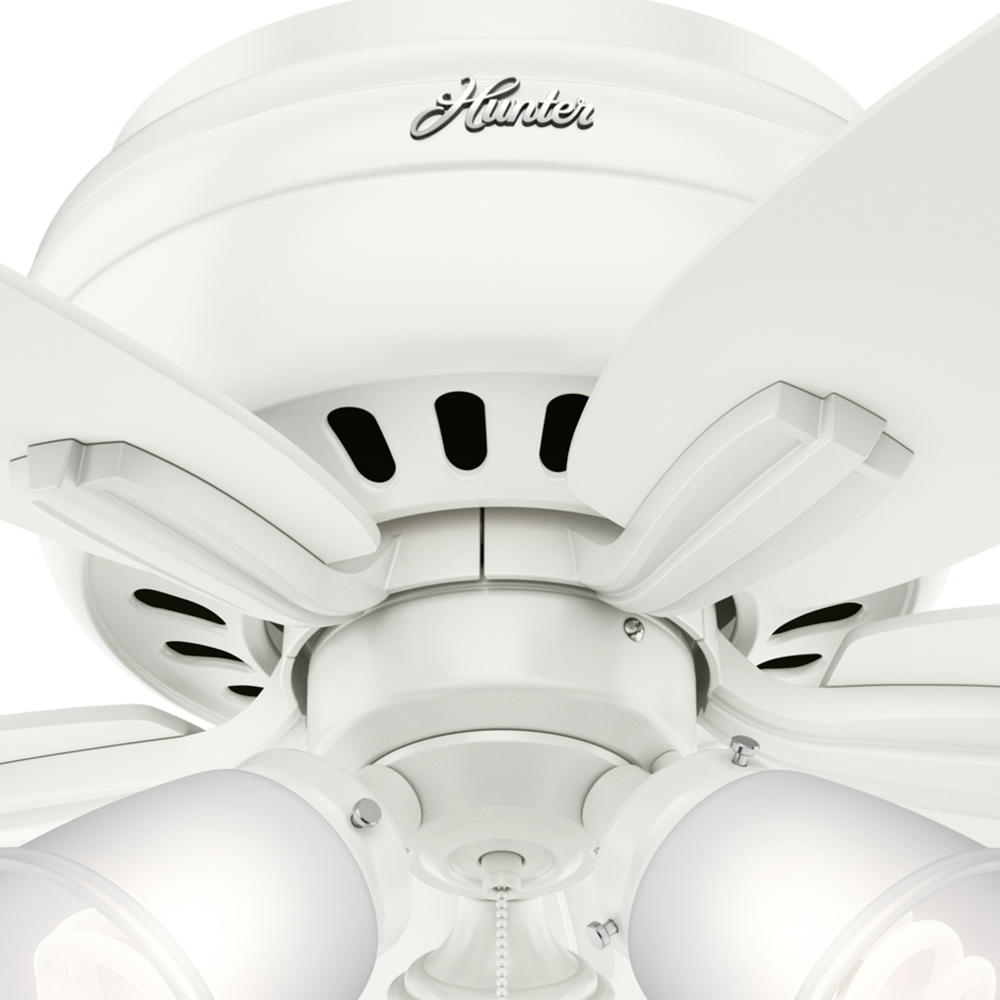 With its charming appearance, the Newsome low-profile ceiling fan with light will complement your casual design style. The clean line details throughout the fan body and blade irons work together to create a coherent design that will fit any small room with a low ceiling. The three-light fixture provides your ideal ambiance while the 42-inch blades are powered by a three-speed WhisperWind? motor delivering superior air movement and whisper-quiet performance so you get all the cooling power you want without the noise. The Newsome Collection offers you the freedom to choose from many different sizes, light kits, and other options to maintain a consistent look throughout every room in your home.