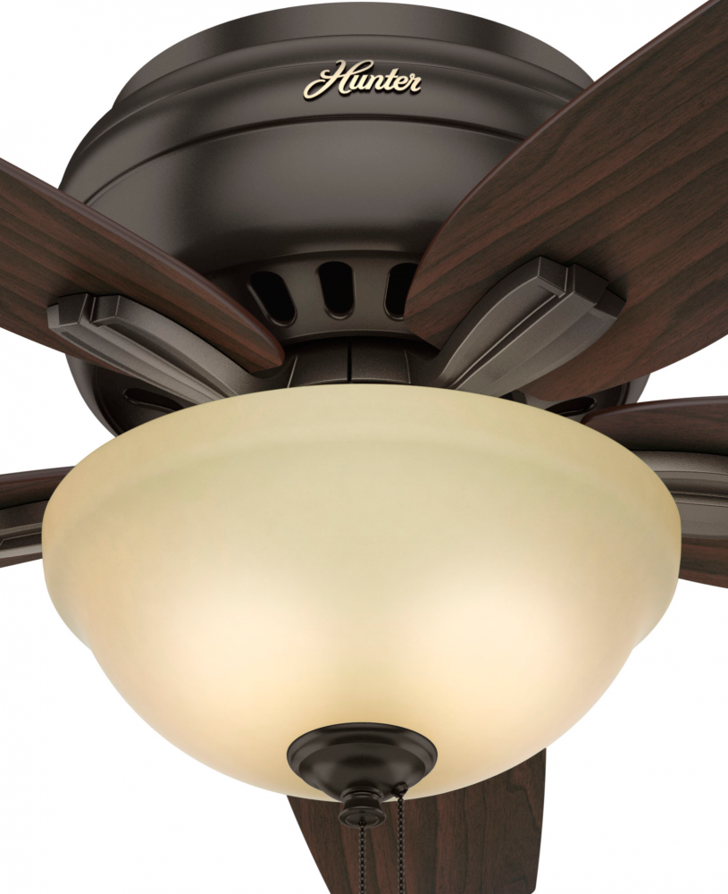 With its charming appearance, the Newsome low-profile ceiling fan with light will complement your casual design style. The clean line details throughout the fan body and blade irons work together to create a coherent design that will fit any small room with a low ceiling. The handsome bowl light fixture provides your ideal ambiance while the 42-inch blades are powered by a three-speed WhisperWind? motor delivering superior air movement and whisper-quiet performance so you get all the cooling power you want without the noise. The Newsome Collection offers you the freedom to choose from many different sizes, light kits, and other options to maintain a consistent look throughout every room in your home.