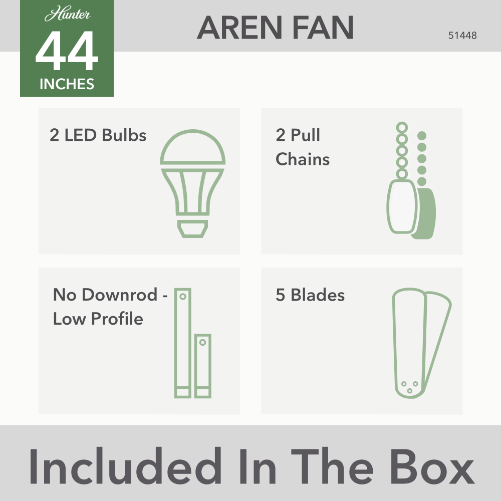 The Aren?s unique design will stand out in your modern spaces. With its 44-inch blade span and clean lines, this fan is the ideal addition to small indoor spaces. Plus, built with our SureSpeed? Guarantee, this fan delivers optimized, high-speed cooling. Make a statement in your space with this powerful fan.