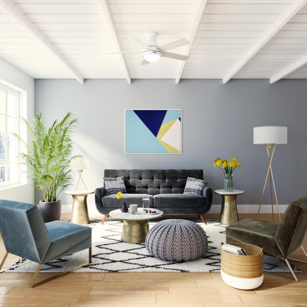 Specially designed low-profile housing fits flush to the ceiling making it ideal for use in rooms with low ceilings less than 9'