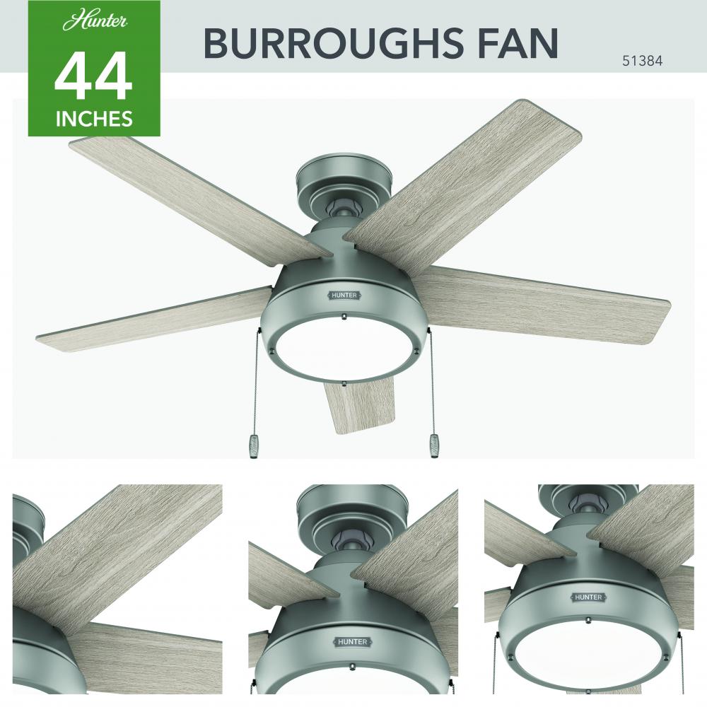 The Burroughs is an all-around cool fan. Its organic modern design is sleek but features subtle geometric inspirations and wood grain blade finishes for a balanced look. This modern ceiling fan is built with our SureSpeed® Guarantee, delivering optimized, high-speed airflow you'll appreciate in your small spaces during warmer months.