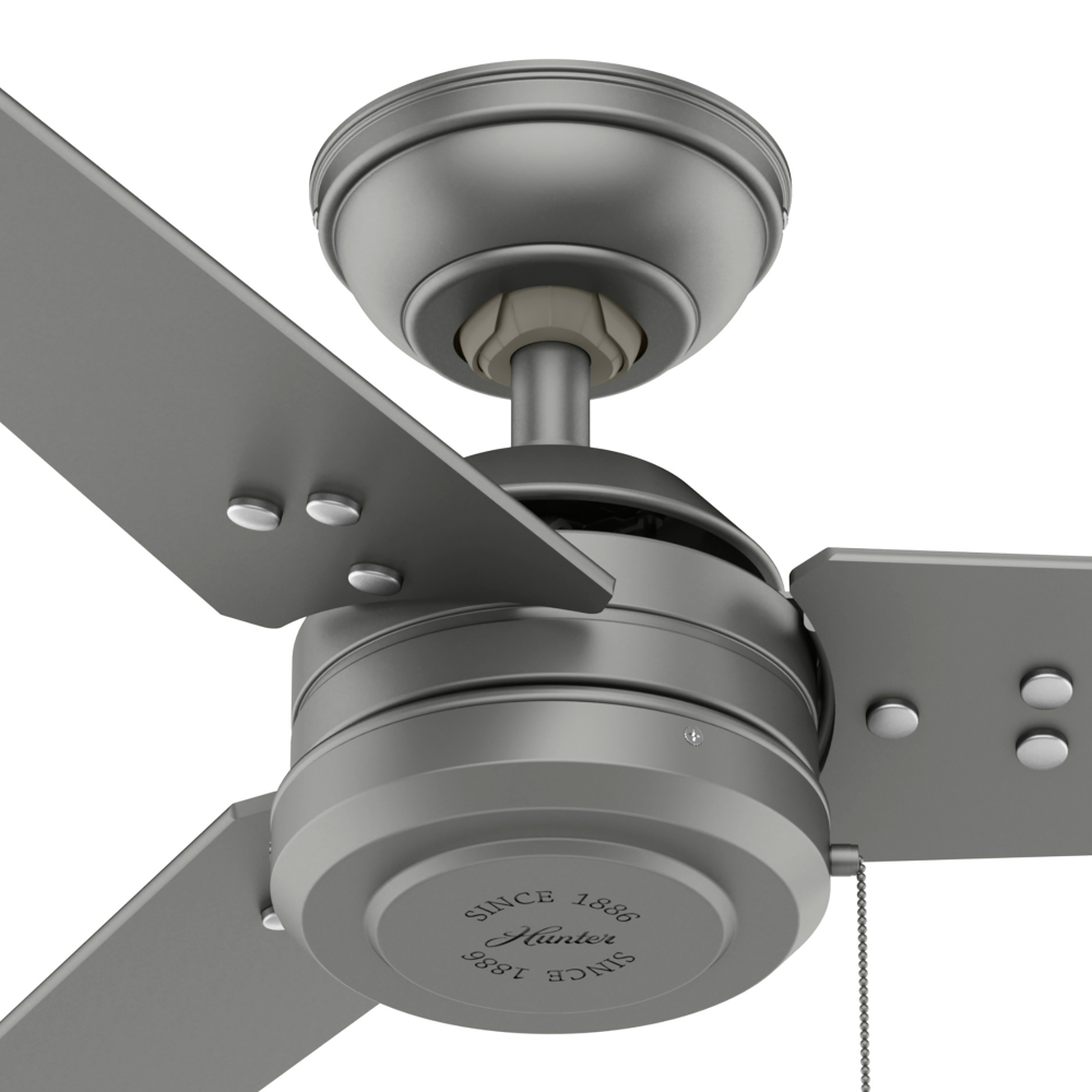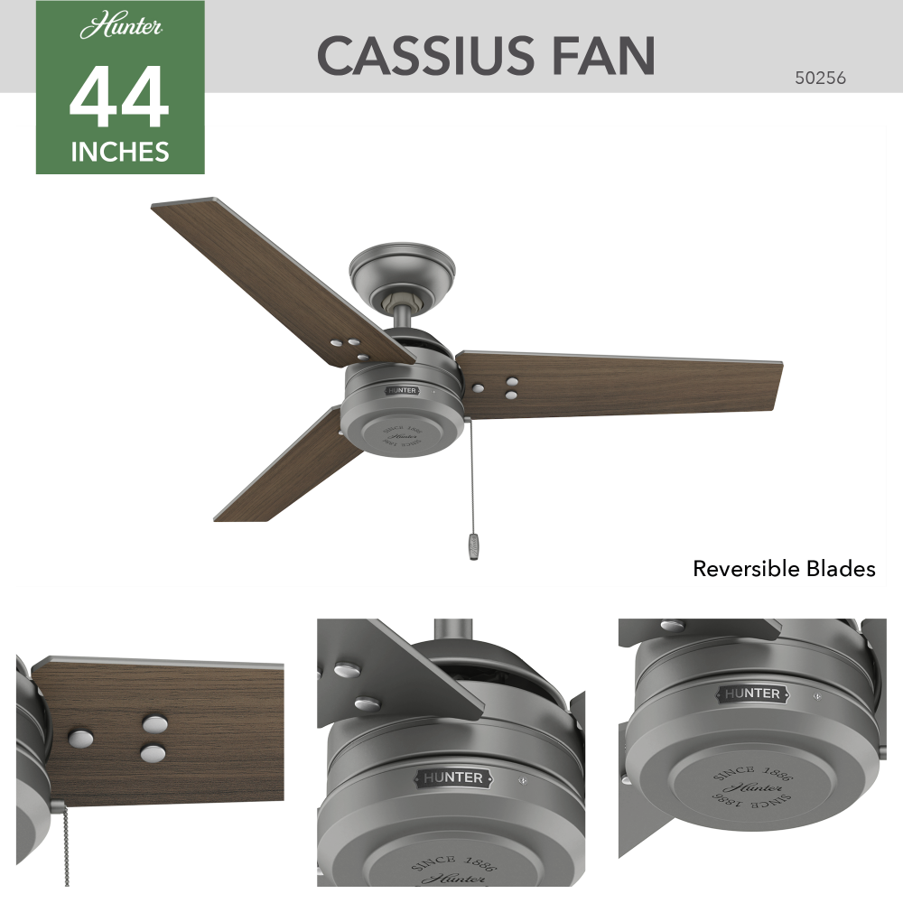 The Cassius outdoor ceiling fan is damp rated and able to withstand moisture and humidity, perfect for covered patios and porches. This ceiling fan?s clean lines and exposed hardware complement modern industrial and farmhouse style indoor spaces as well. The 44-inch blade span on this small ceiling fan is the ideal fit for guest bedrooms, home offices, and small living rooms.