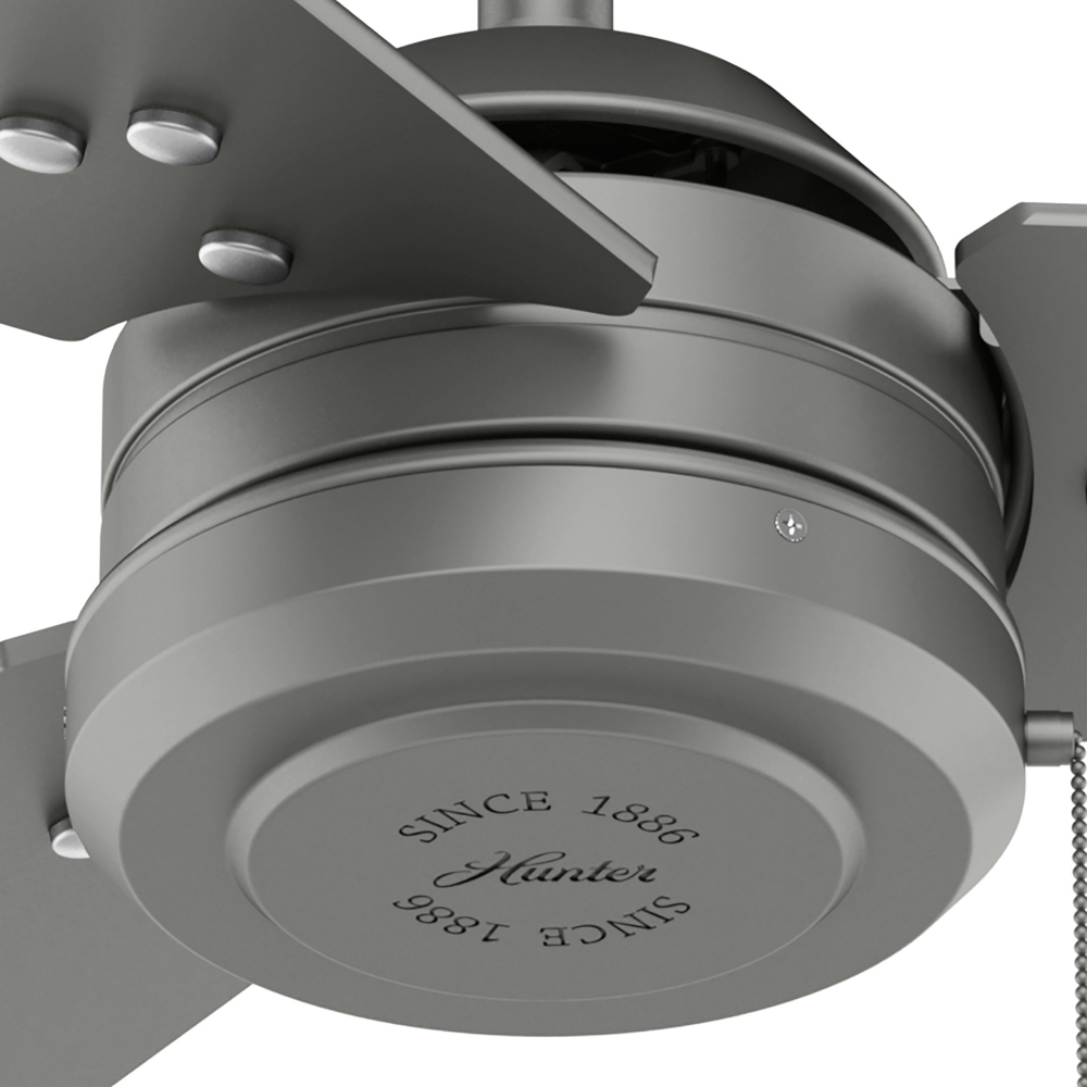 The Cassius outdoor ceiling fan is damp-rated and able to withstand moisture and humidity, perfect for covered patios and porches. This ceiling fan’s clean lines and exposed hardware complement modern industrial and farmhouse-style indoor spaces as well. The 44-inch blade span on this small ceiling fan is the ideal fit for guest bedrooms, home offices, and small living rooms.