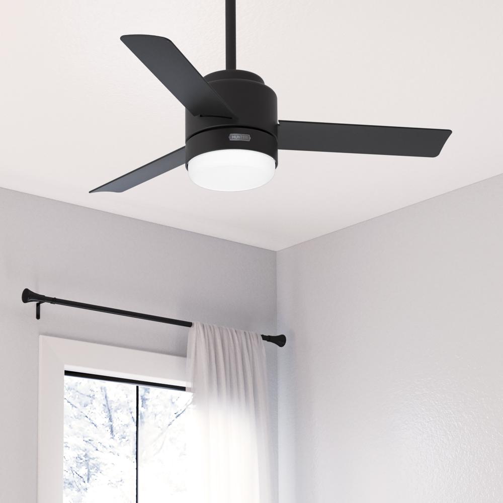 The Gilmour outdoor ceiling fan features a simple design and clean lines to complement your casual, modern covered porches and patios. The Matte Black finish adds a modern, clean look while the Matte White finish adds a bright, bold one. Use this fan indoors too! This small ceiling fan fits close to the ceiling to provide optimal performance in rooms with low ceilings without sacrificing style or headroom.