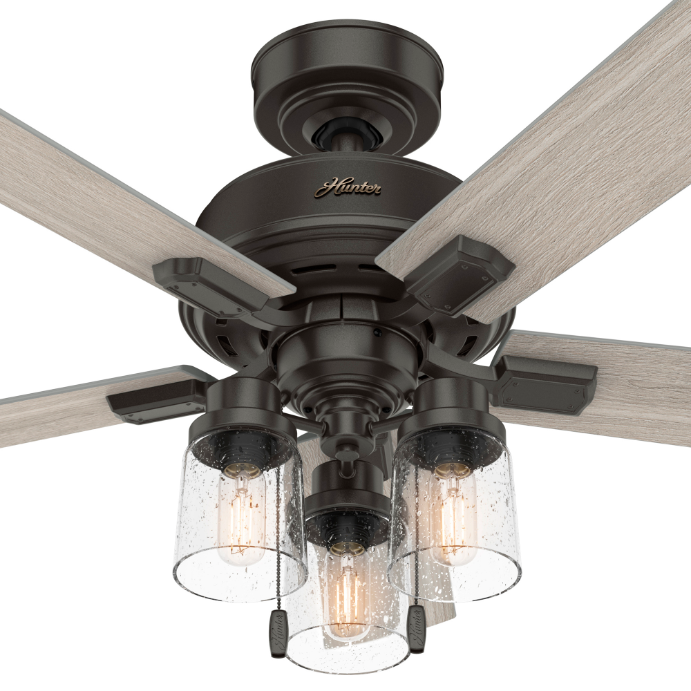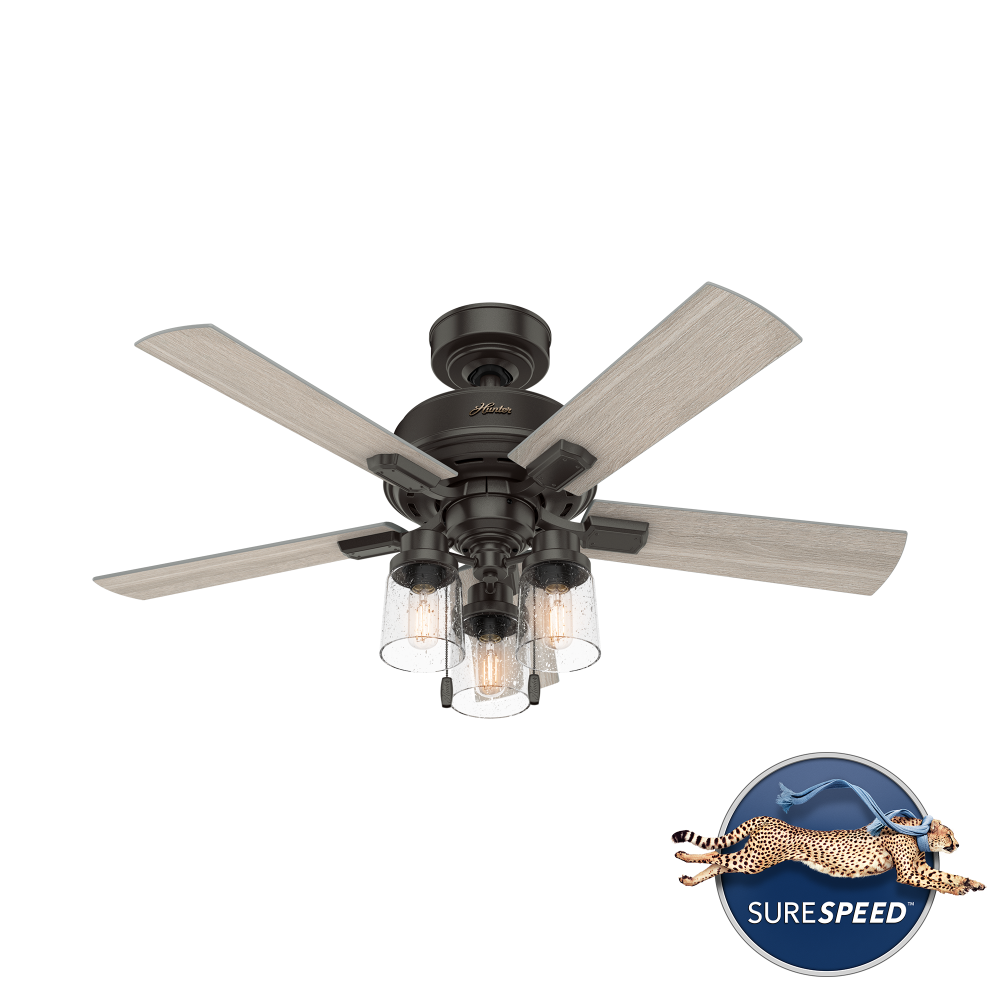 The Hartland indoor ceiling fan’s clear seeded glass and included Edison LED light bulbs create a stunning look in small, casual rooms. The Noble Bronze and Matte Silver finishes complement other fixtures in a farmhouse, and casual spaces while the Indigo Blue finish adds a subtle pop of color. Create a cohesive look in your space by pairing the Hartland ceiling fan with the coordinating light fixtures in its collection.