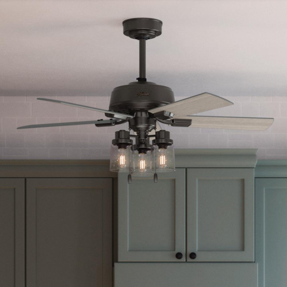 The Hartland indoor ceiling fan?s clear seeded glass and included Edison LED light bulbs create a stunning look in small, casual rooms. The Noble Bronze and Matte Silver finishes complement other fixtures in farmhouse, casual spaces while the Indigo Blue finish adds a subtle pop of color. Create a cohesive look in your space by pairing the Hartland ceiling fan with the coordinating light fixtures in its collection.