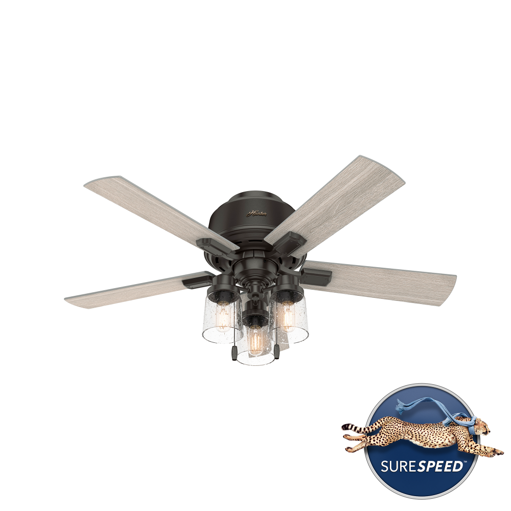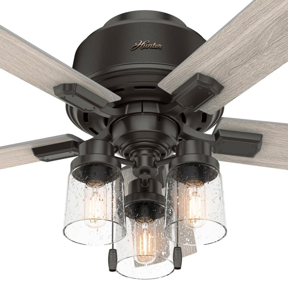 The Hartland chandelier inspired ceiling fan?s clear seeded glass and included Edison LED light bulbs create a stunning look in large spaces. The Noble Bronze and Matte Silver finishes complement other fixtures in farmhouse, casual spaces while the Indigo Blue finish adds a subtle pop of color. This indoor ceiling fan is designed to fit flush in small rooms with ceilings less than 9 feet high. Create a cohesive look in your space by pairing the Hartland ceiling fan with the coordinating light fixtures in its collection.
