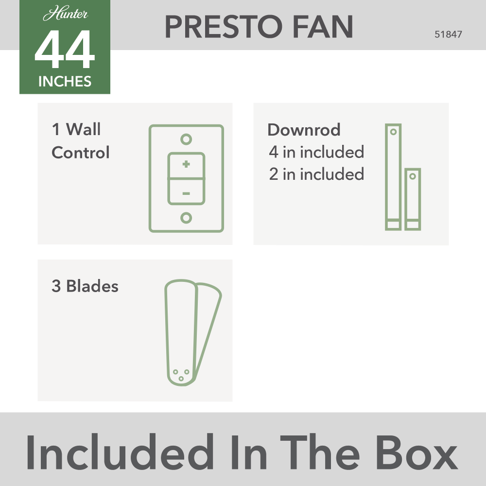 Includes Wall Control for easy speed and lighting adjustment right from your wall switch