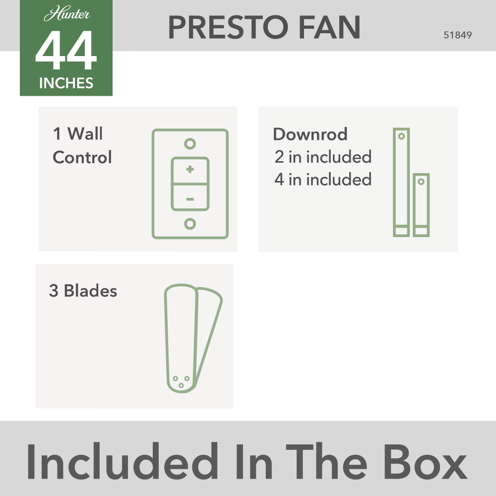 Includes Wall Control for easy speed and lighting adjustment right from your wall switch