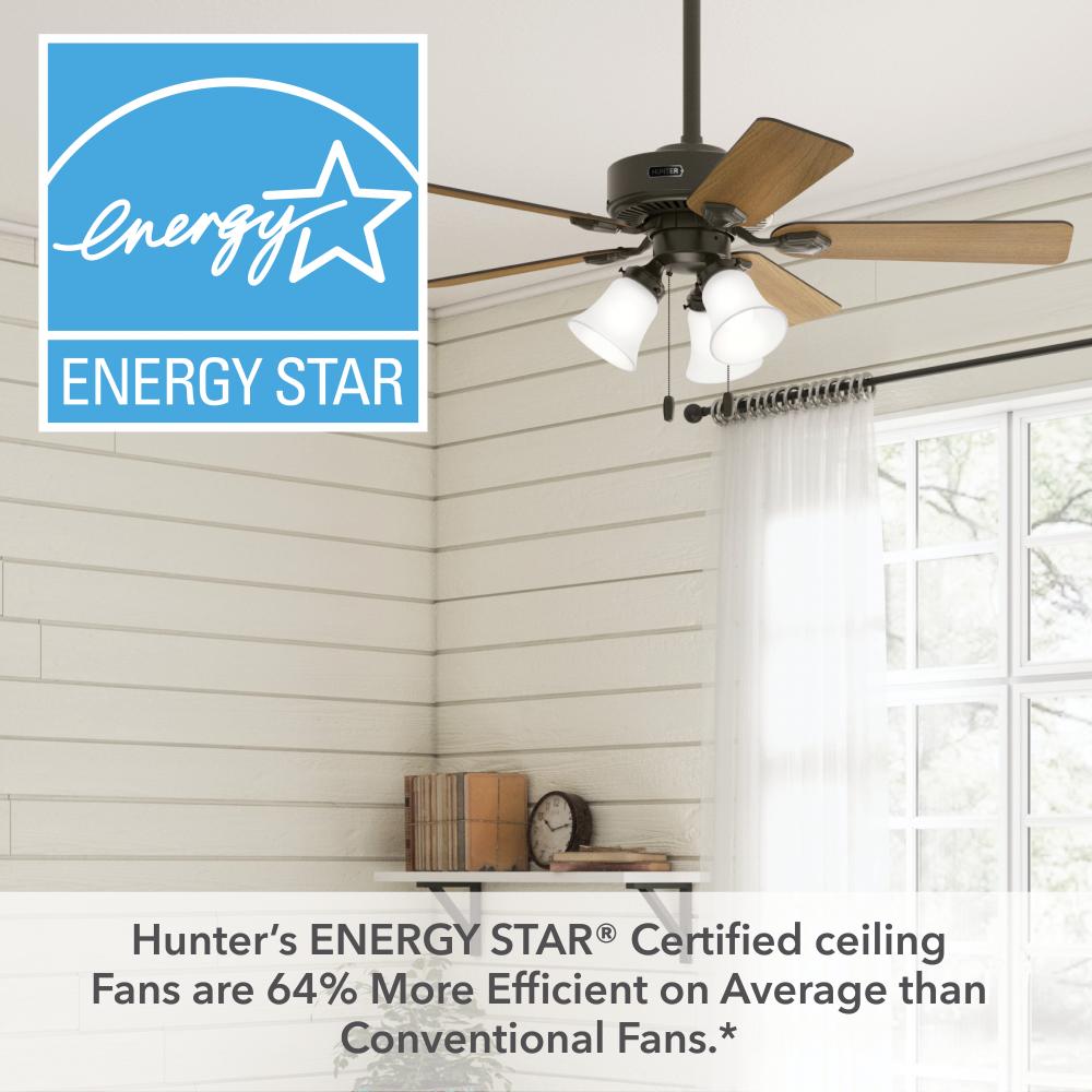 ENERGY EFFICIENT: Hunter’s ENERGY STAR® certified ceiling fans are 64% more efficient on average than conventional fans while helping you save you money on cooling costs.