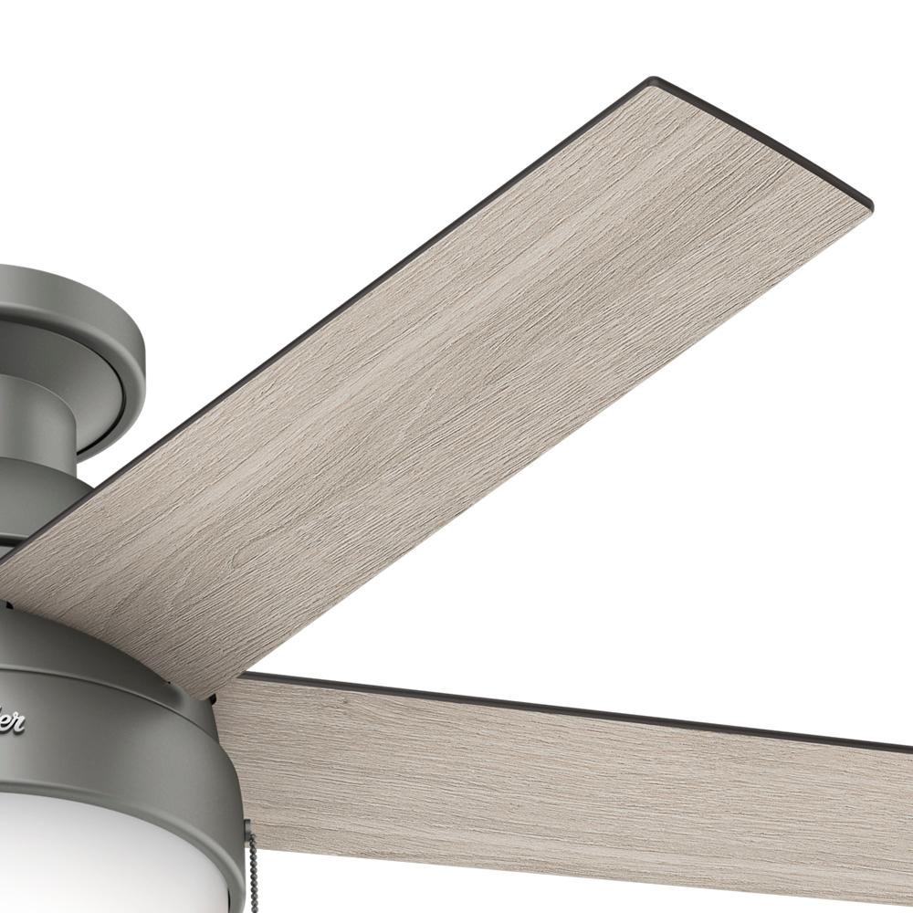 With four finishes to choose from, the Anslee low-profile ceiling fan is the perfect accent for your small or standard-size room's contemporary interior design style. The low-profile housing is specially designed to fit flush to the ceiling and is ideal for use in rooms with low ceilings. Enjoy full control over setting the perfect atmosphere with our energy-efficient LED bulbs. The reversible three-speed WhisperWind® motor delivers ultra-powerful air movement with a whisper-quiet performance so you get the cooling power you want without the noise you don't.
