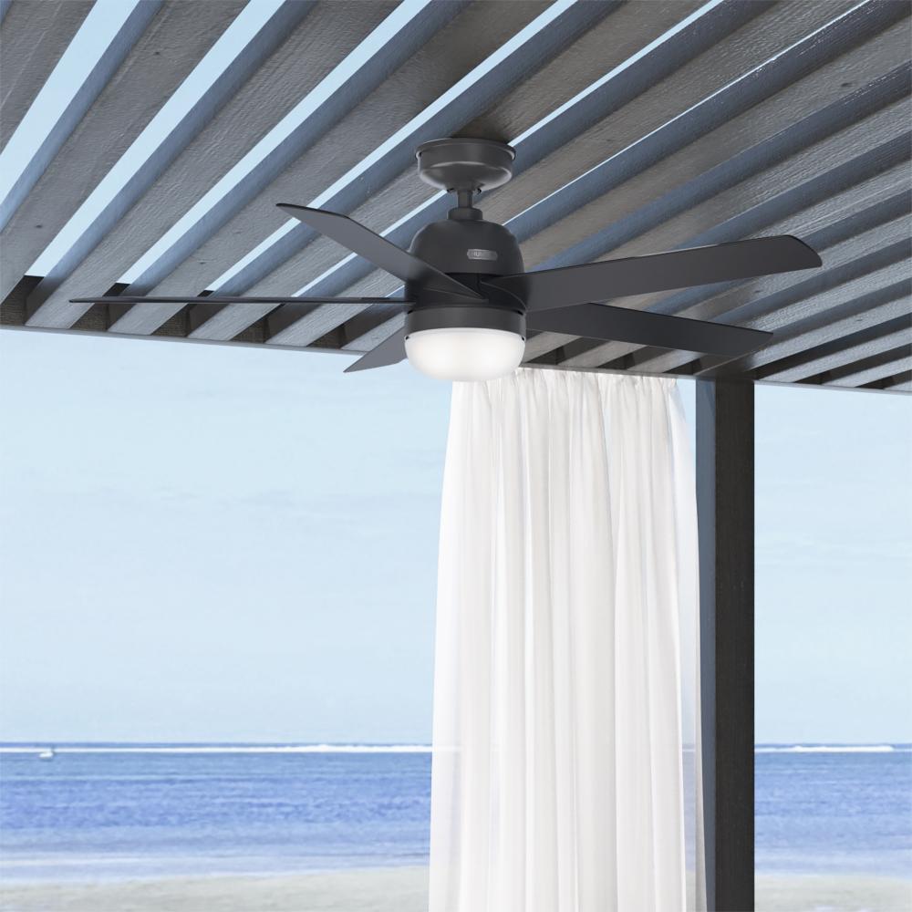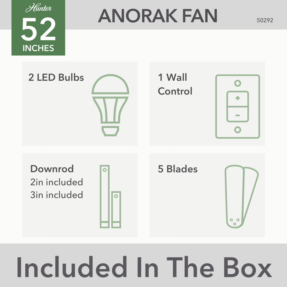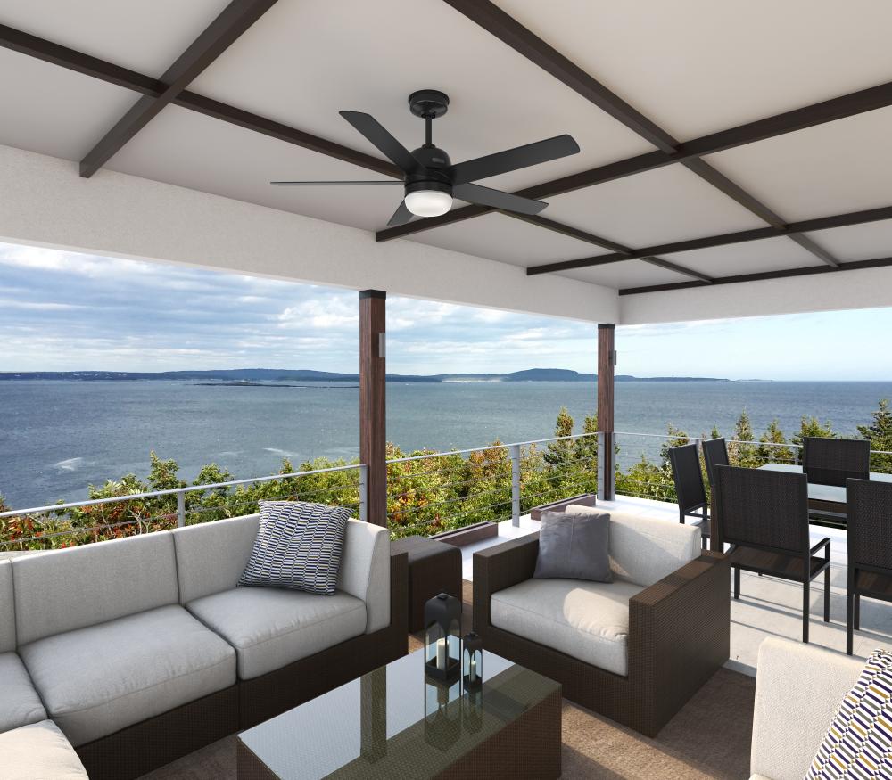 Sleek, strong, and Engineered for the Elements®. The Anorak outdoor ceiling fan is equipped with our WeatherMax® and SureSpeed® technologies for cooling comfort in outdoor spaces, rain or shine. Set the perfect ambiance using the premium wall control to control the three fan speeds and dimmable LED light.