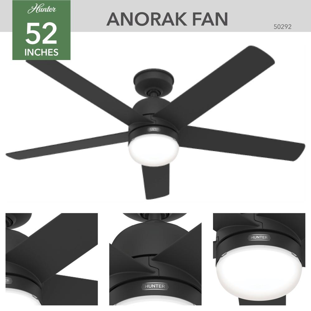 Sleek, strong, and Engineered for the Elements?. The Anorak outdoor ceiling fan is equipped with our WeatherMax? and SureSpeed? technologies for cooling comfort in outdoor spaces, rain or shine. Set the perfect ambiance using the premium wall control to control the three fan speeds and dimmable LED light.