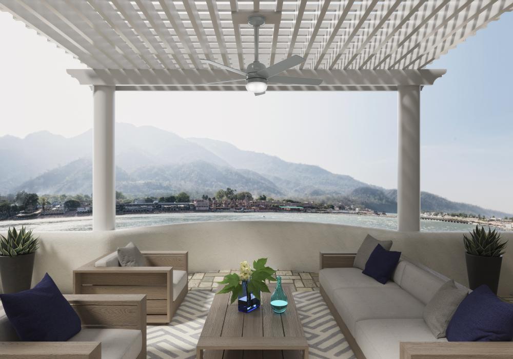 Sleek, strong, and Engineered for the Elements®. The Anorak outdoor ceiling fan is equipped with our WeatherMax® and SureSpeed® technologies for cooling comfort in outdoor spaces, rain or shine. Set the perfect ambiance using the premium wall control to control the three fan speeds and dimmable LED light.