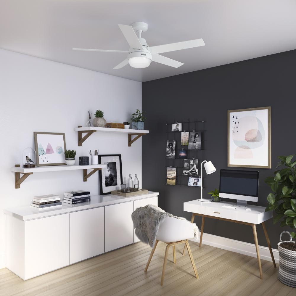 A modern fan design outfitted with modern technology. Built with our SureSpeed® Guarantee and HunterSMART™, formerly known as SIMPLEconnect®, Wi-Fi® technology, the Aerodyne smart ceiling fan delivers optimized, high-speed cooling with the tap of your smartphone or voice command to your smart device. Connect the Aerodyne smart fan with Amazon Alexa, Google Home, and Apple HomeKit. The Wi-Fi components and remote receiver are built into this modern ceiling fan, so you’ll have it up and running in no time.
