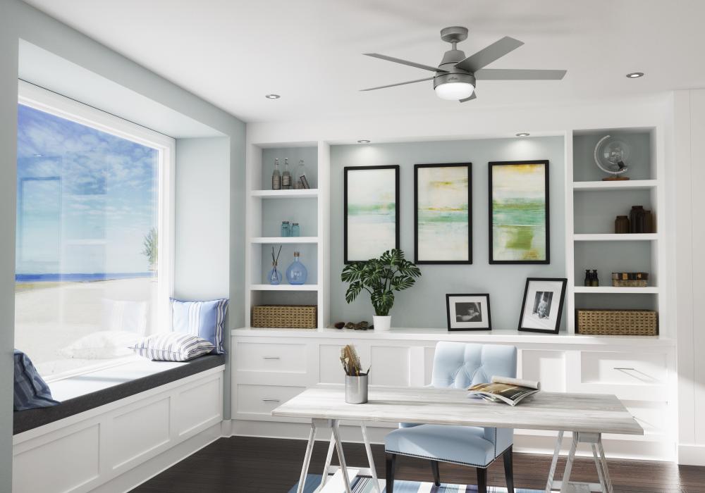 A modern fan design outfitted with modern technology. Built with our SureSpeed? Guarantee and SIMPLEconnect? Wi-Fi? technology, the Aerodyne smart ceiling fan delivers optimized, high-speed cooling with the tap of your smart phone or voice command to your smart device. Connect the Aerodyne smart fan with Amazon Alexa, Google Home, and Apple HomeKit. The Wi-Fi components and remote receiver are built into this modern ceiling fan, so you?ll have it up and running in no time.
