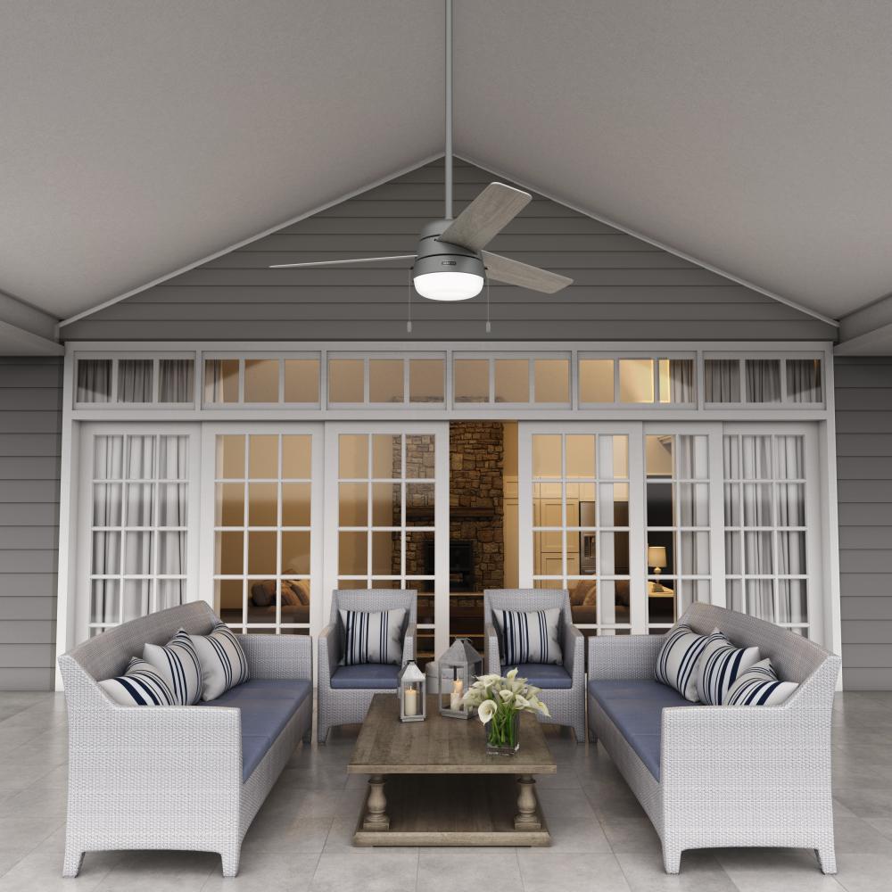 The Aker outdoor ceiling fan keeps your covered porches and patios cool and stylish. Inspired by Scandinavian modern design, its soft lines give it a transitional look that can be used in various style rooms, from Mid-Century modern to farmhouse style. The included pull chains make it easy to control your fan and fan light functions. The Aker is available in a variety of finishes, sizes, and in indoor and outdoor ratings, letting you create a cohesive style throughout your home.