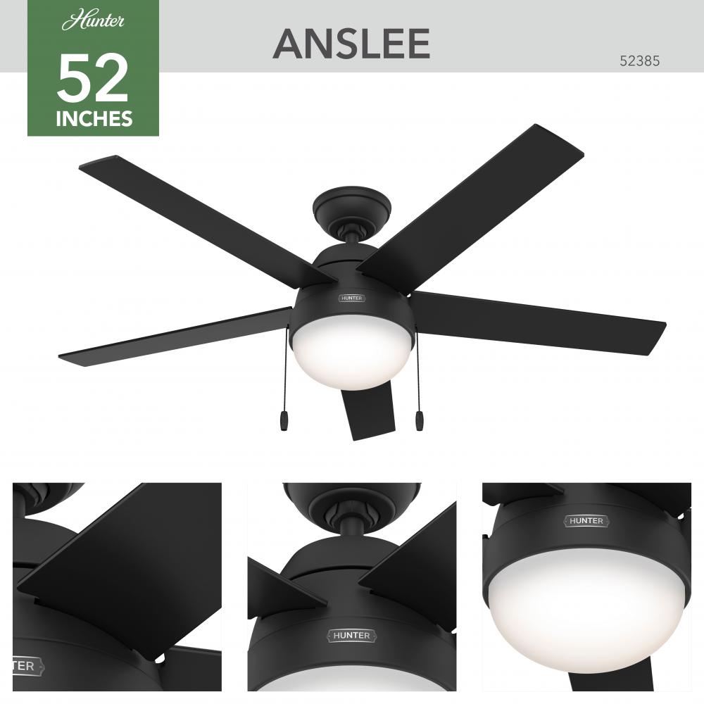 The Anslee modern ceiling fan features clean lines and classic finishes for a versatile design. This 52-inch ceiling fan with LED light illuminates large spaces like bedrooms, living rooms, home offices, and game rooms. Use the included ceiling fan pull chains to easily control the light and fan speed. Featuring our WhisperWind® motor, the Anslee delivers powerful air movement with whisper-quiet performance. Available in a variety of finishes and sizes, the Anslee Collection makes it easy to choose a ceiling fan and create a cohesive look throughout your home.