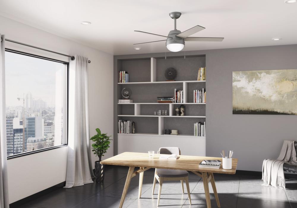 The Anslee modern ceiling fan features clean lines and classic finishes for a versatile design. This 52-inch ceiling fan with LED light illuminates large spaces like bedrooms, living rooms, home offices, and game rooms. Use the included ceiling fan pull chains to easily control the light and fan speed. Featuring our WhisperWind® motor, the Anslee delivers powerful air movement with whisper-quiet performance. Available in a variety of finishes and sizes, the Anslee Collection makes it easy to choose a ceiling fan and create a cohesive look throughout your home.