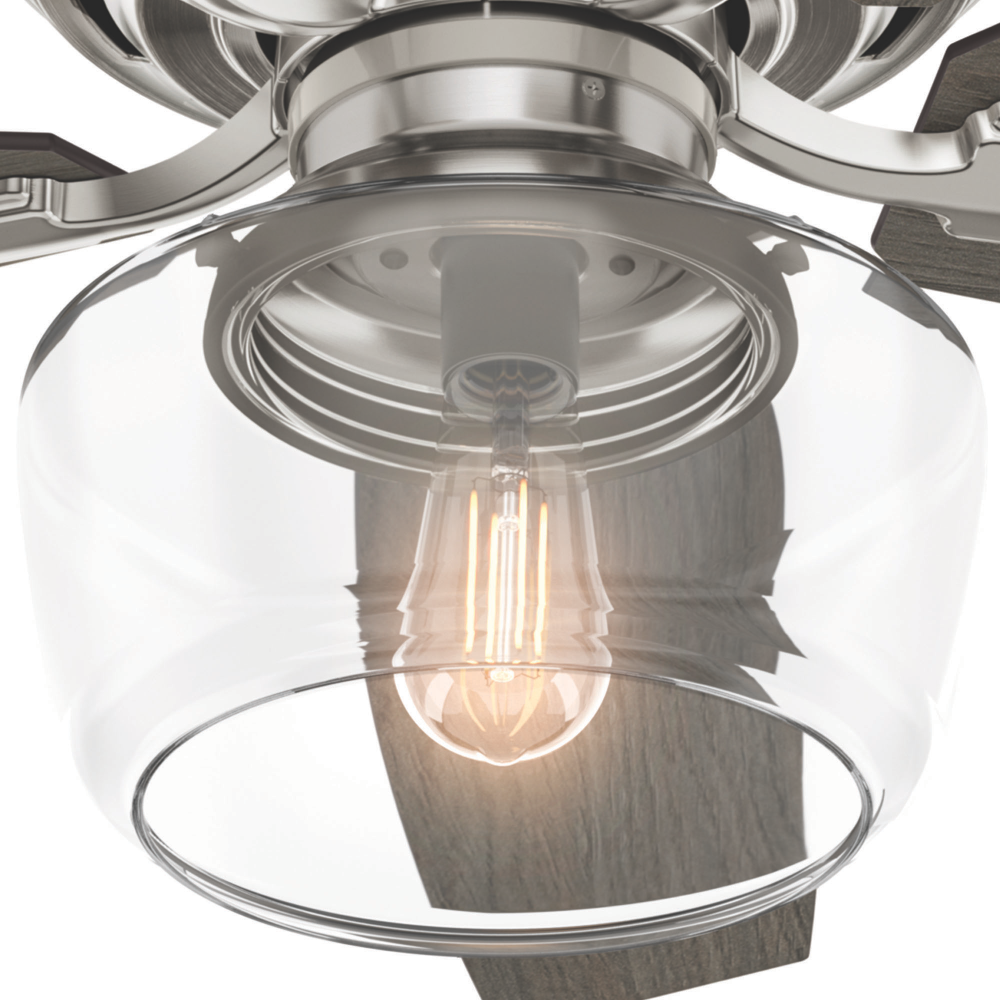 Regarded as one of our best ceiling fans by designers and homeowners alike, the renewed classic look of a Bennett ceiling fan will add flair to your traditional living spaces. A smoked yet clear open glass globe completes this fan's harmonious color palette while adding a touch of glamour. Whether you like your light moody or as bright as possible, the energy-efficient LED Edison bulb enhances the ambiance of your room while a powerful WhisperWind® motor will make your formal, chic spaces as functional as they are stylish. The low-profile design makes this fan ideal for rooms with lower ceilings.