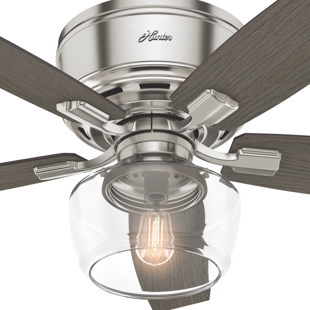 Regarded as one of our best ceiling fans by designers and homeowners alike, the renewed classic look of a Bennett ceiling fan will add flair to your traditional living spaces. A smoked yet clear open glass globe completes this fan's harmonious color palette while adding a touch of glamour. Whether you like your light moody or as bright as possible, the energy-efficient LED Edison bulb enhances the ambiance of your room while a powerful WhisperWind? motor will make your formal, chic spaces as functional as they are stylish. The low-profile design makes this fan ideal for rooms with lower ceilings.