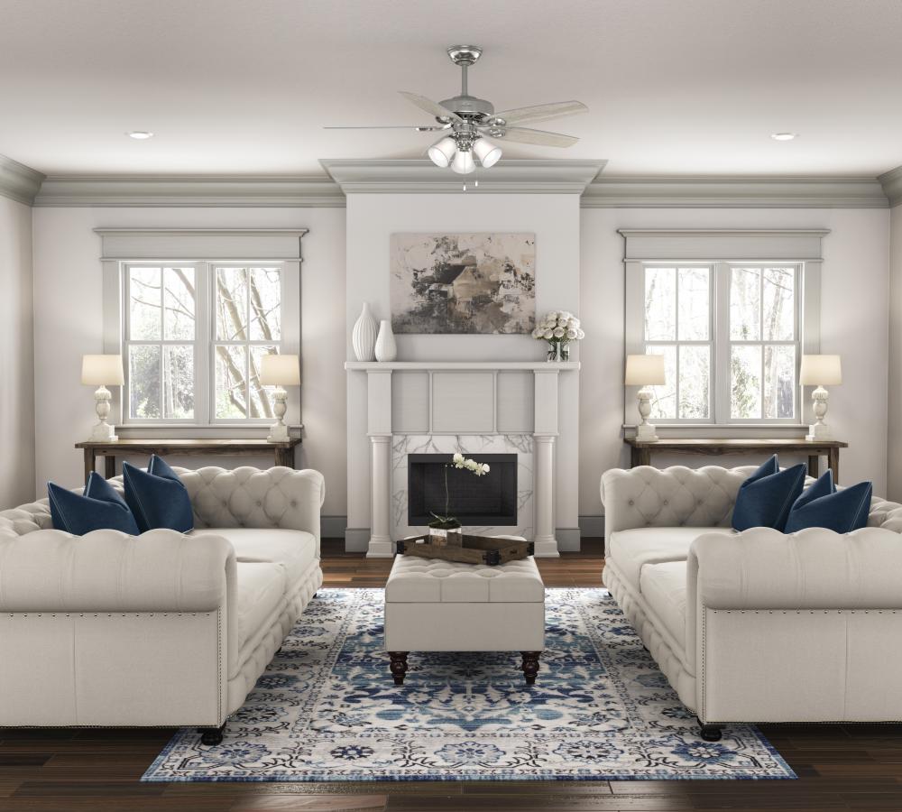 A mainstay in the Hunter collection of fans, the casual, traditional design of the Builder classic ceiling fan with light complements your rooms without overpowering them. The Builder fan includes three LED light bulbs to help illuminate your large indoor rooms like bedrooms and living rooms. Featuring WhisperWind® motor technology, it delivers the quiet, ultra-powerful air performance you expect from a ceiling fan. Available in a variety of finishes and sizes, use the Builder Collection to create a cohesive look throughout your home.