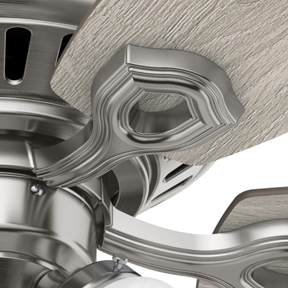With a 52-inch blade span and low-profile design, the casual, traditional style of the Builder Low Profile will complement large rooms in your home without overpowering them. A mainstay in the Hunter® product line, this low-profile ceiling fan with lights features three-speed WhisperWind® motor technology to deliver quiet and ultra-powerful performance.