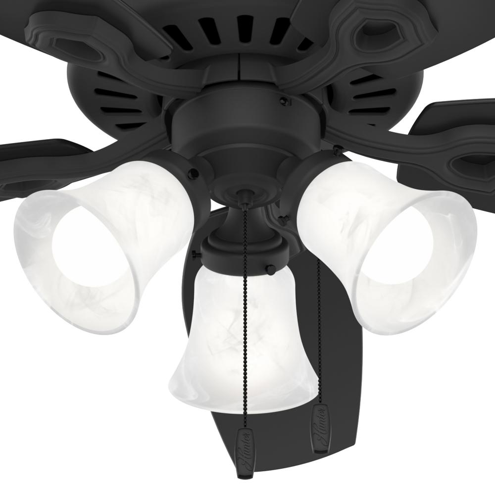 A mainstay in the Hunter collection of fans, the casual, traditional design of the Builder classic ceiling fan with light complements your rooms without overpowering them. The Builder fan includes three LED light bulbs to help illuminate your large indoor rooms like bedrooms and living rooms. Featuring WhisperWind® motor technology, it delivers the quiet, ultra-powerful air performance you expect from a ceiling fan. Available in a variety of finishes and sizes, use the Builder Collection to create a cohesive look throughout your home.