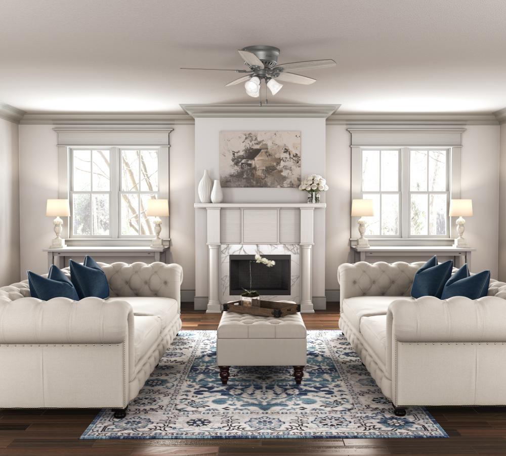 With a 52-inch blade span and low-profile design, the casual, traditional style of the Builder Low Profile will complement large rooms in your home without overpowering them. A mainstay in the Hunter® product line, this low-profile ceiling fan with lights features three-speed WhisperWind® motor technology to deliver quiet and ultra-powerful performance.