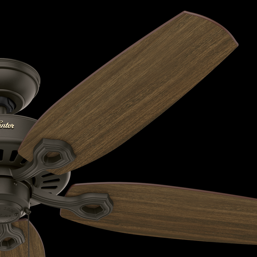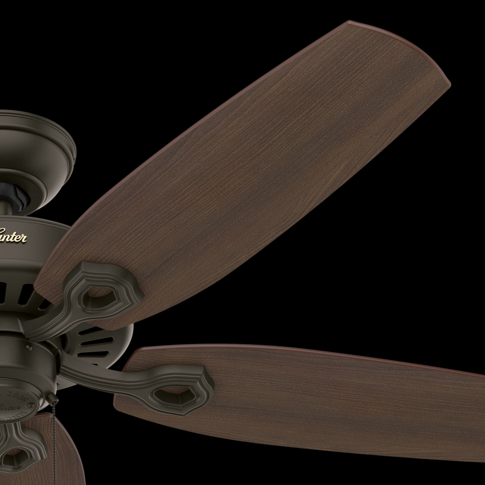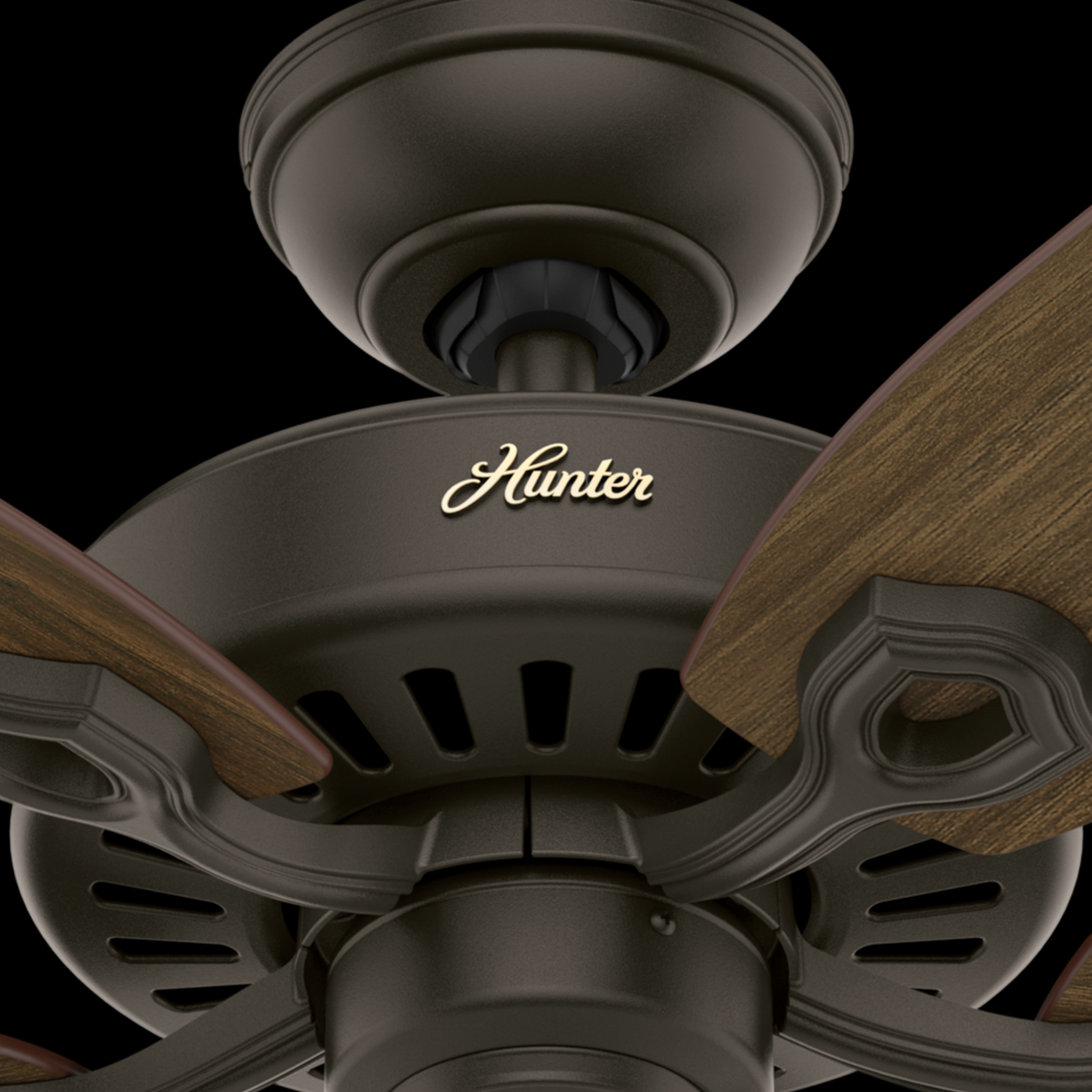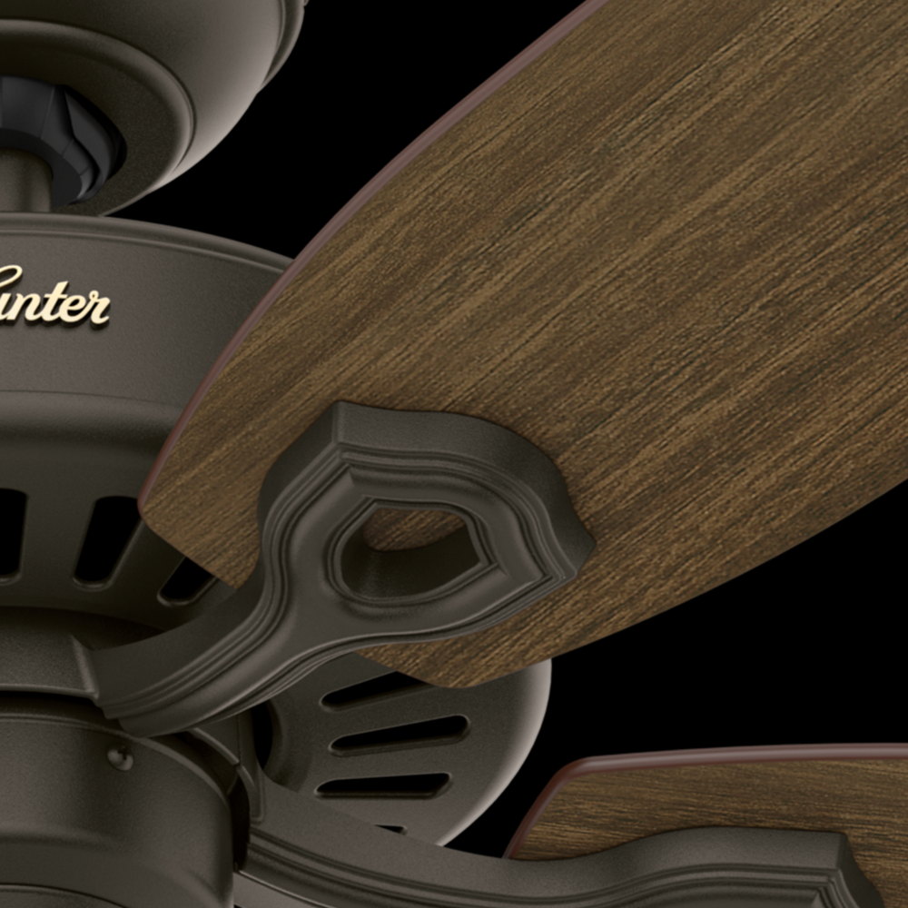 With a 52-inch blade span and four finishes to choose from, the casual, traditional style of the Builder Elite will complement standard or large rooms in your home without overpowering them. A mainstay in the Hunter® product line, these ceiling fans without lights feature three-speed WhisperWind® motor technology to deliver quiet and ultra-powerful performance.