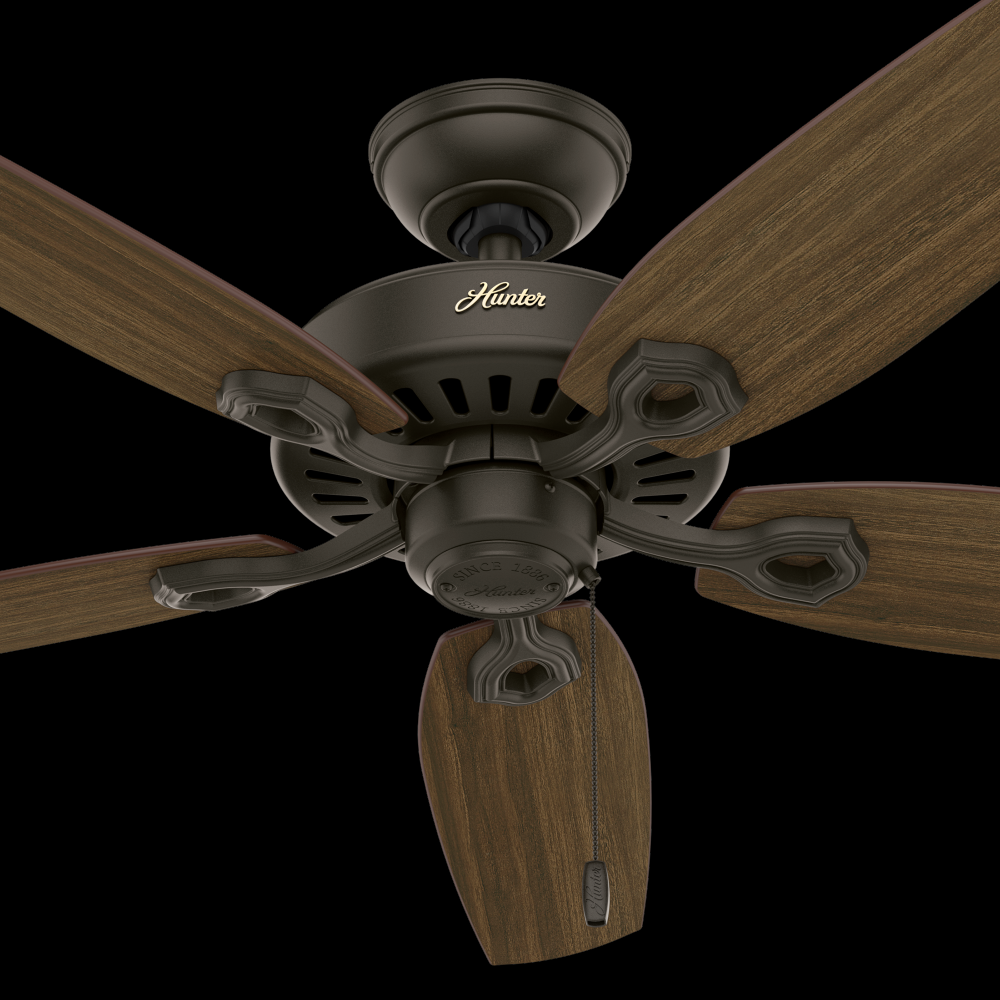 With a 52-inch blade span and four finishes to choose from, the casual, traditional style of the Builder Elite will complement standard or large rooms in your home without overpowering them. A mainstay in the Hunter? product line, these ceiling fans without lights feature three-speed WhisperWind? motor technology to deliver quiet and ultra-powerful performance.