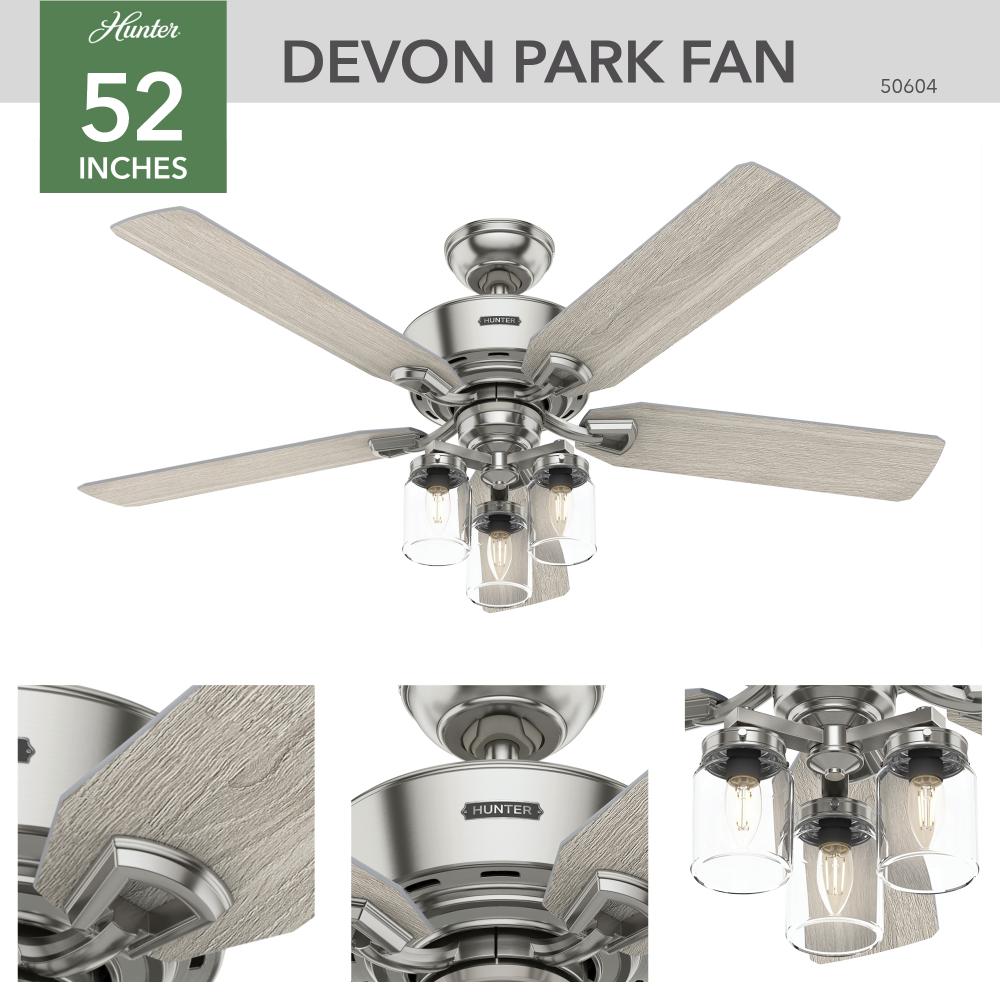 Hunter 52 inch Devon Park Brushed Nickel Ceiling Fan with LED Light Kit and Handheld Remote