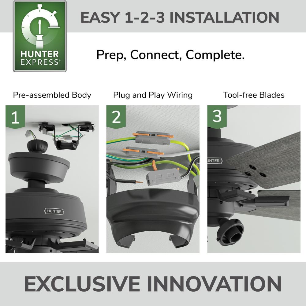 EASY TO INSTALL: HunterExpress® fans are created for easy 1-2-3- installation that comes with a pre-assembled body, plug & play wiring, and easy-install blades.