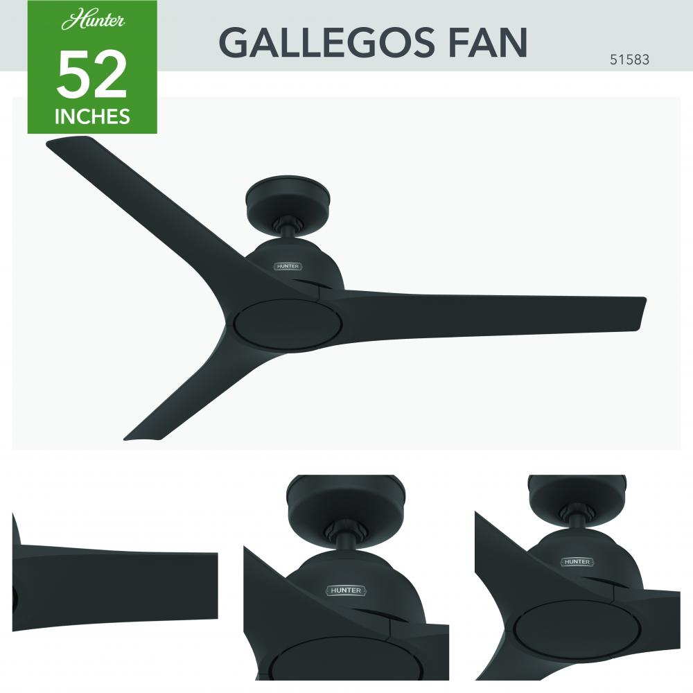 The Gallegos damp-rated ceiling fan is the must-have modern accent for your covered porch, patio, or large indoor spaces. Designed to keep your place looking—and feeling—cool all year round, the Gallegos delivers a quiet, smooth performance in a sophisticated style. Our 3-speed WhisperWind® reversible motor and SureSpeed® Guarantee make this ceiling fan the total package.