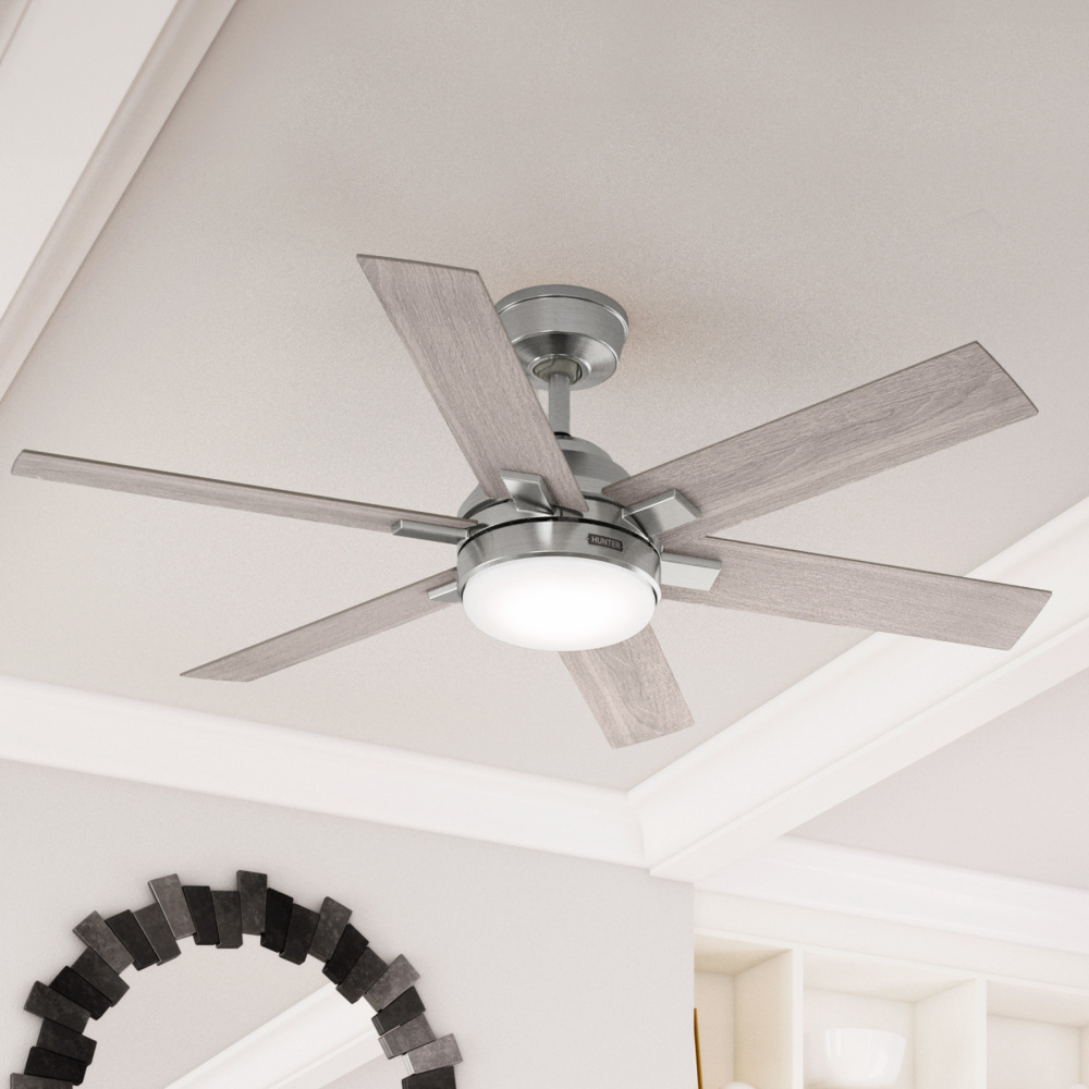 Be the talk of the town with the Georgetown ENERGY STAR® ceiling fan, designed for large rooms with a modern touch. Perfect for indoor use, it features a 6-speed DC motor, delivering superior energy efficiency—64% more efficient*. Control your comfort with ease using the included remote. Hunter’s ENERGY STAR® certified ceiling fans provide top-notch performance and sleek style, making your home more comfortable and eco-friendly. Plus, HunterExpress® fans are created for easy 1-2-3 installation with a pre-assembled body, plug & play wiring, and easy-install blades.
