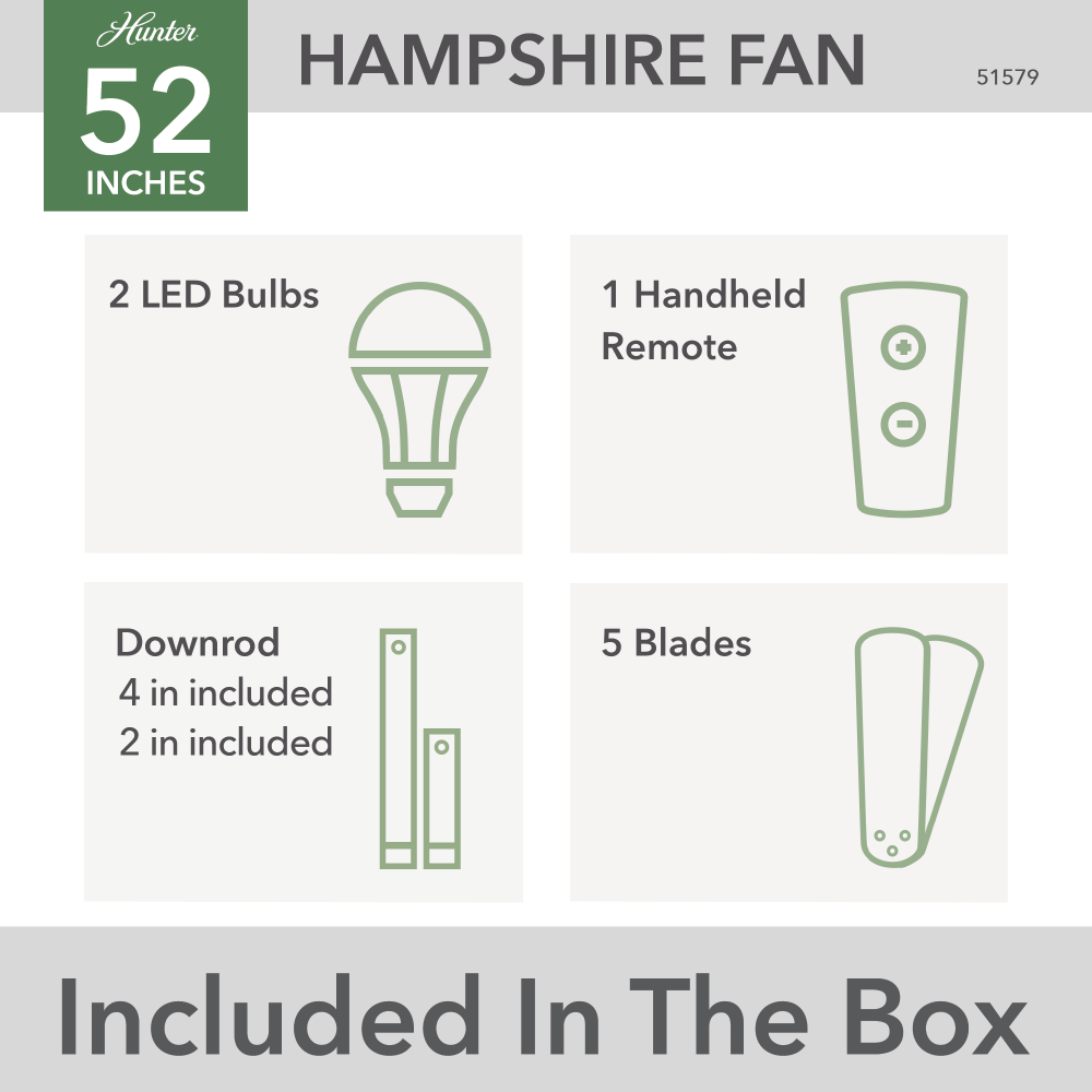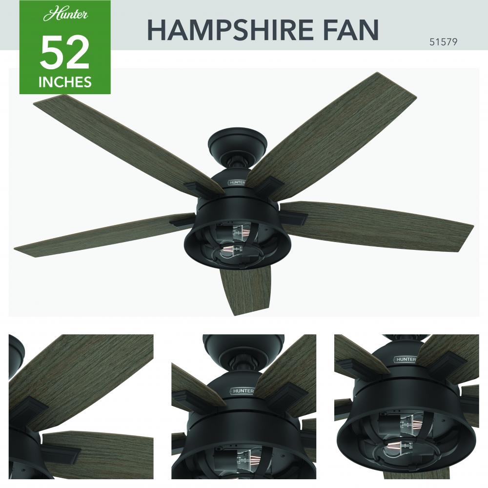 Powerful performance with a memorable design. Rustic finishes and wood grain detailing come together to form the 52-inch Hampshire ceiling fan. Influenced by farmhouse design, this fan brings the outdoorsy, rustic spirit inside to your favorite large rooms. Equipped with our SureSpeed® Guarantee, the Millington keeps your indoor spaces cool – without the noise.