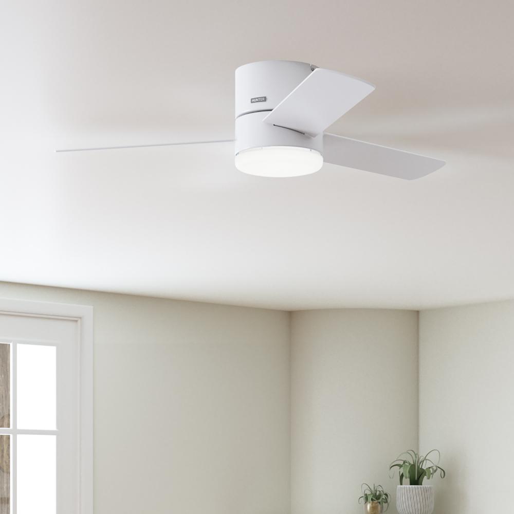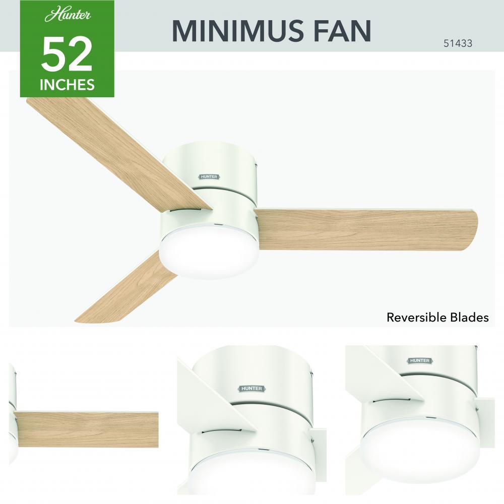 The Minimus ceiling fan's minimalist design makes it the perfect fit in your modern and transitional spaces. Designed to fit flush in rooms with low ceilings, this ultra-low-profile ceiling fan is perfect for small rooms with low ceiling heights. The Minimus ceiling fan boasts a three-speed WhisperWind® motor to deliver powerful, efficient airflow. You can easily control the dimmable, energy-efficient LED light and fan speeds with the included handheld remote.