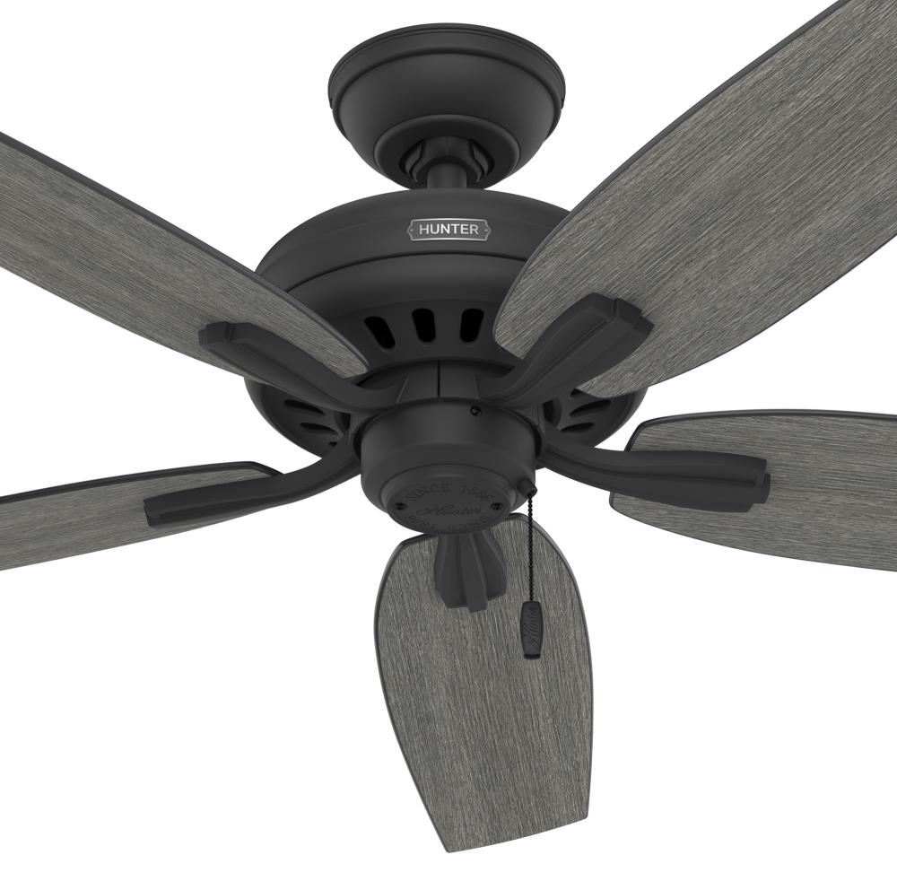 With its charming appearance, the Newsome traditional ceiling fan without light will complement your casual design style. The clean line details throughout the fan body and blade irons work together to create a coherent design that will fit any standard or large room space. The 52-inch blades are powered by a three-speed WhisperWind® motor delivering superior air movement and whisper-quiet performance so you get all the cooling power you want without the noise. The Newsome Collection offers you the freedom to choose from many different sizes, light kits, and other options to maintain a consistent look throughout every room in your home.